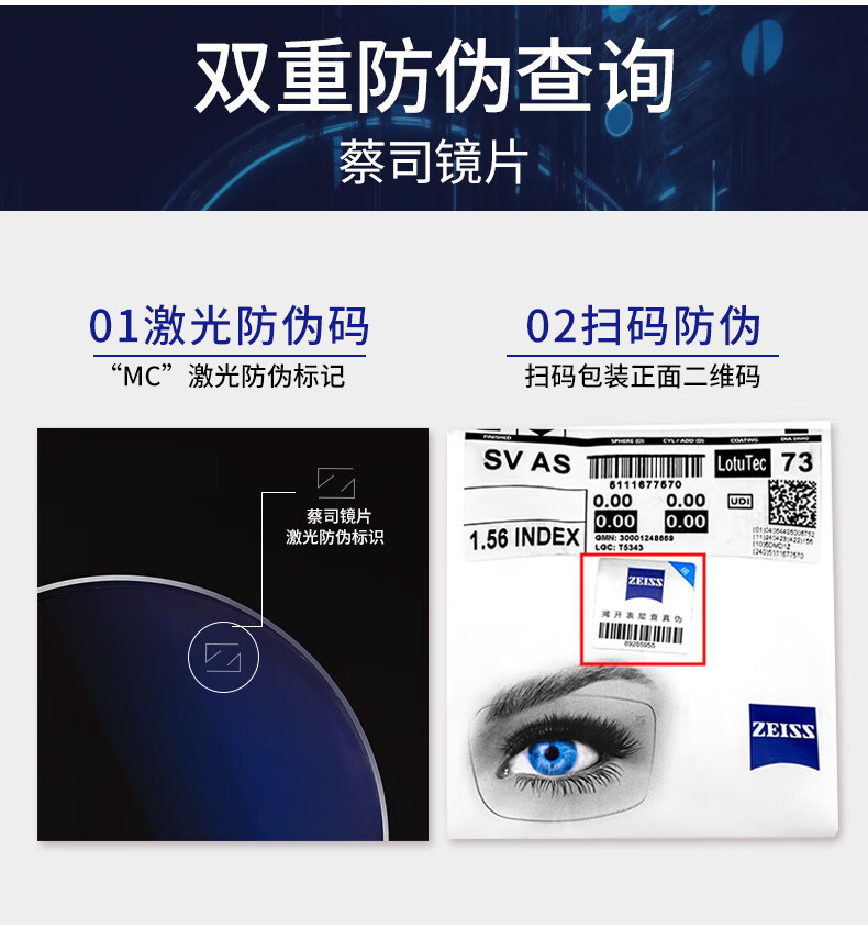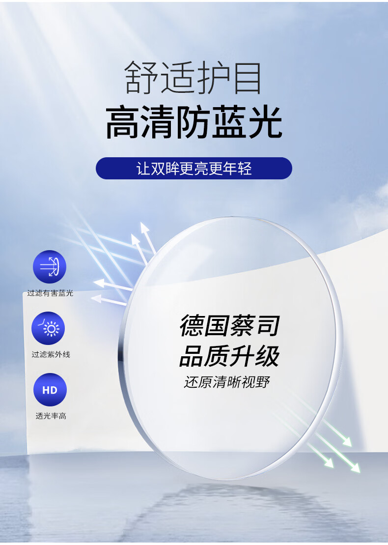 蔡司(ZEISS)泽锐眼镜片现片1.67自由环面防蓝光PLUS+钻立方铂金配镜1片/-1000