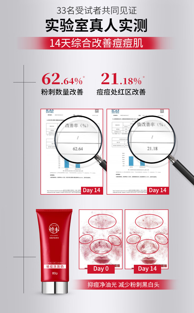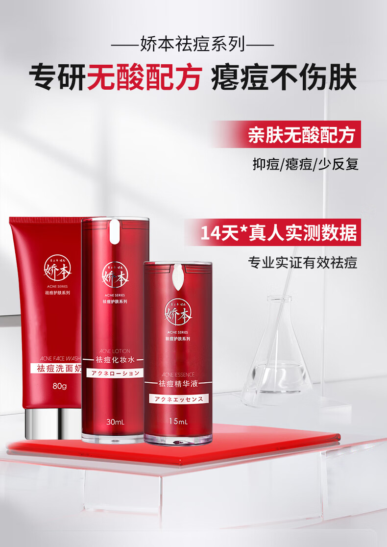 娇本(jiaoben)男女青春痘熬夜痘姨妈痘保湿去黑头粉刺白头14天无酸祛痘化妆品 (减少油腻、无酸祛痘)洁面80ml