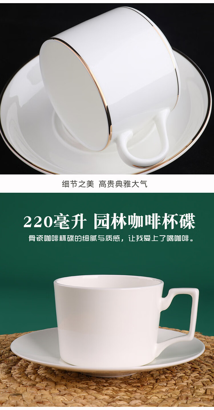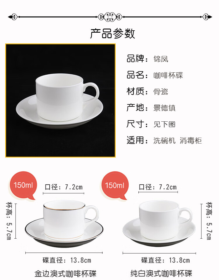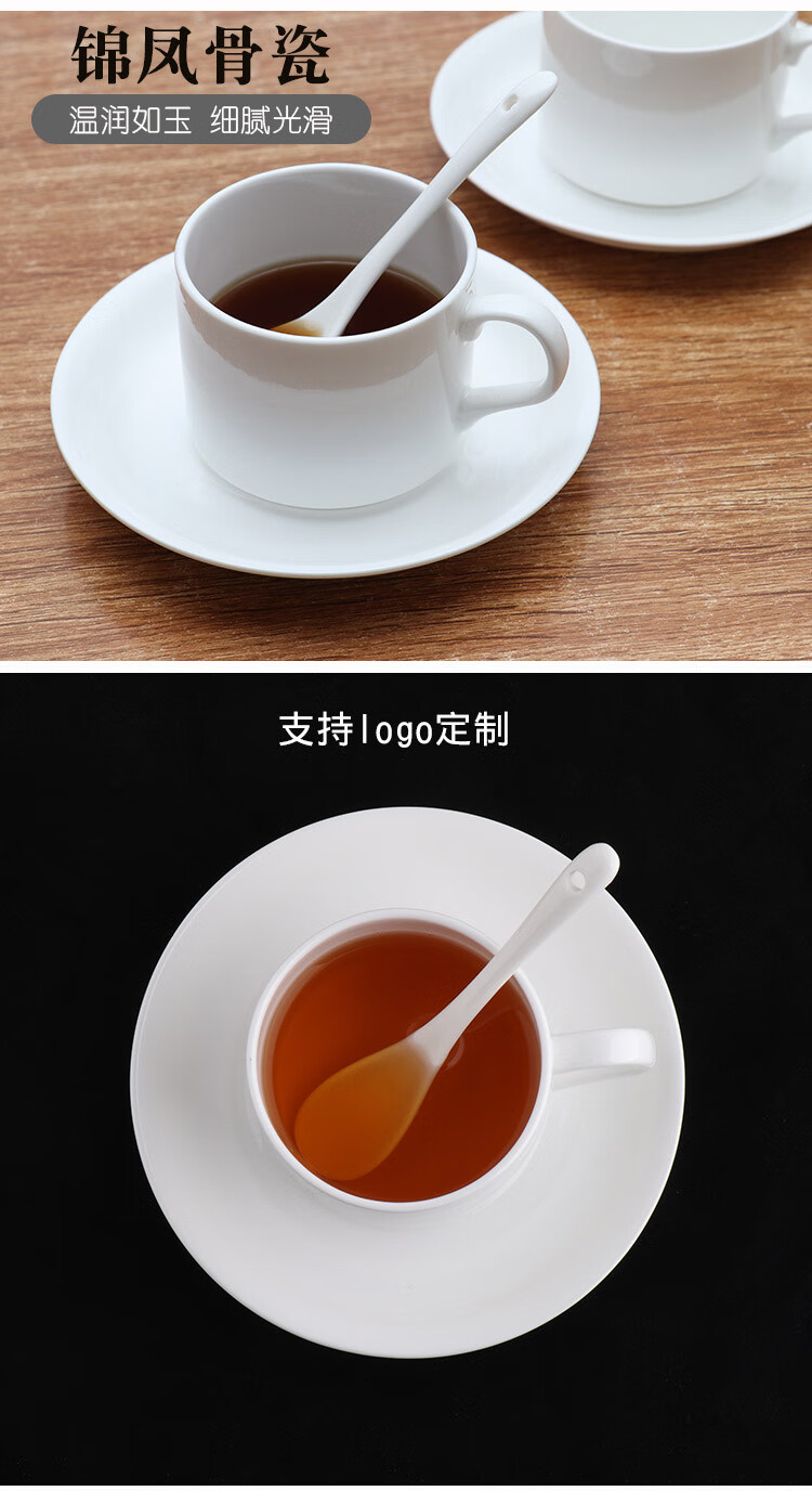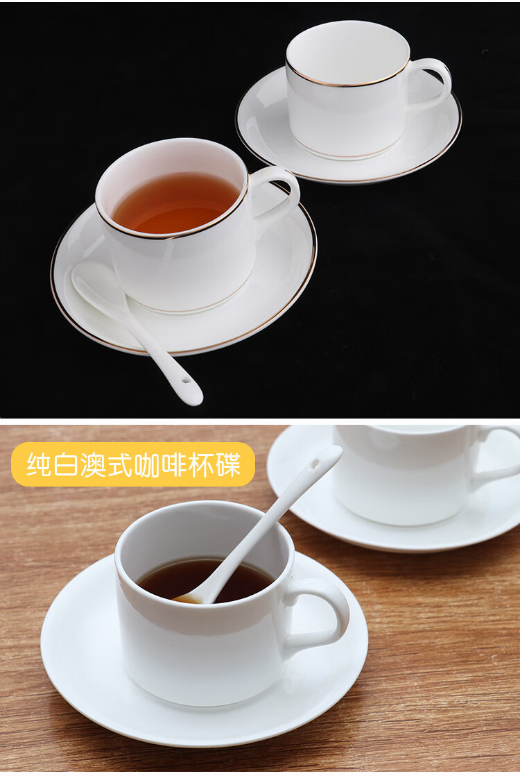 錦鳯锦凤骨瓷咖啡杯碟景德镇欧式简约咖啡套具矮 咖啡杯一杯一碟1勺 纯白澳式单杯