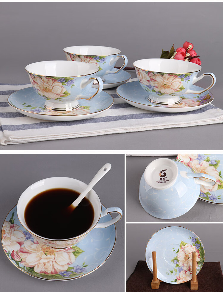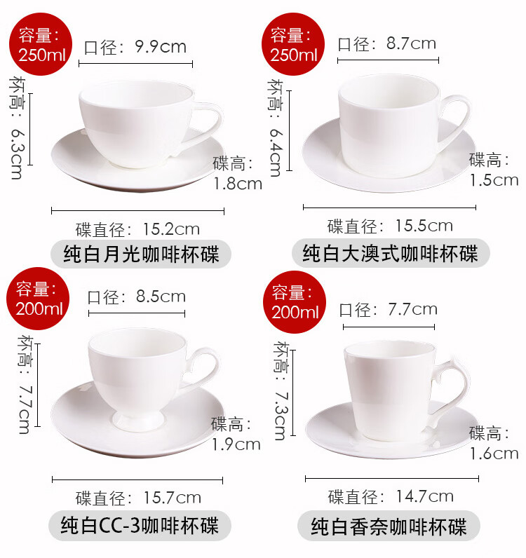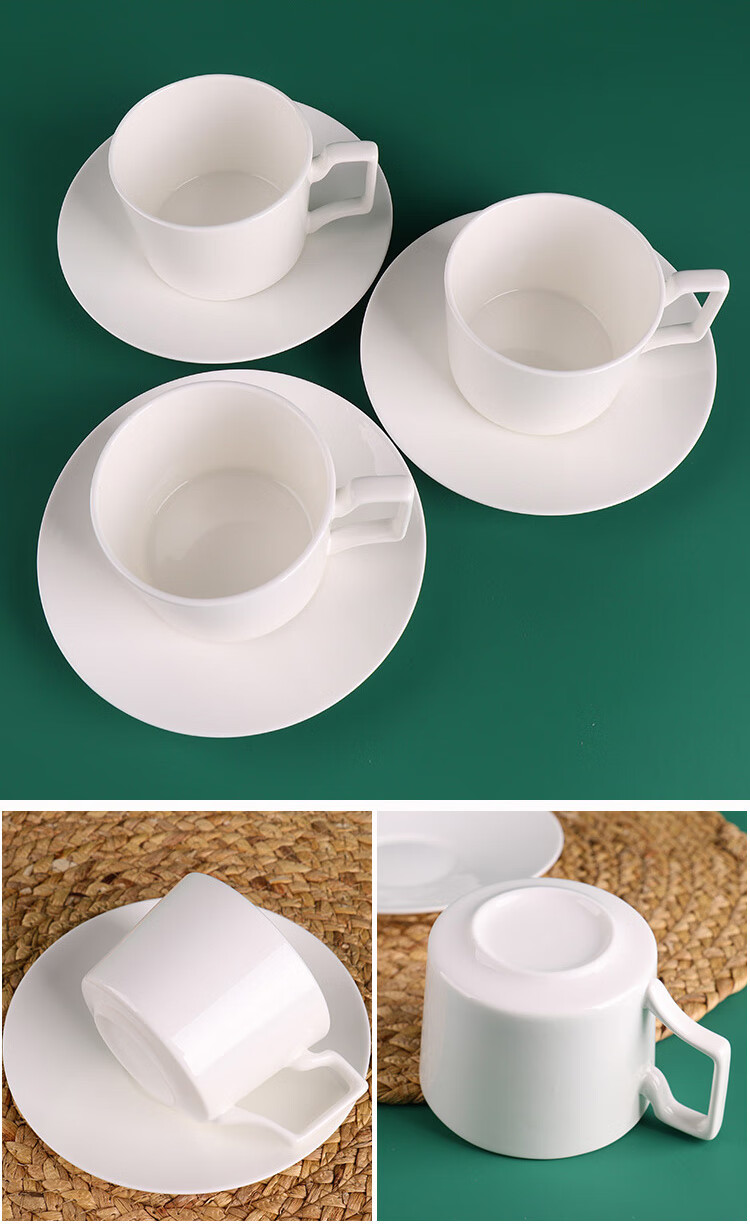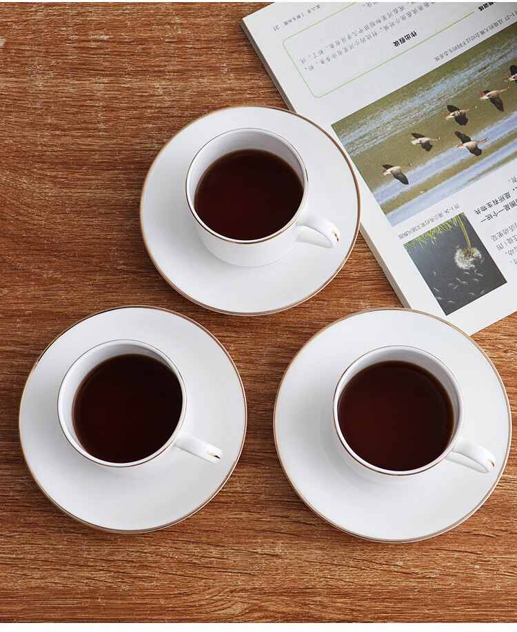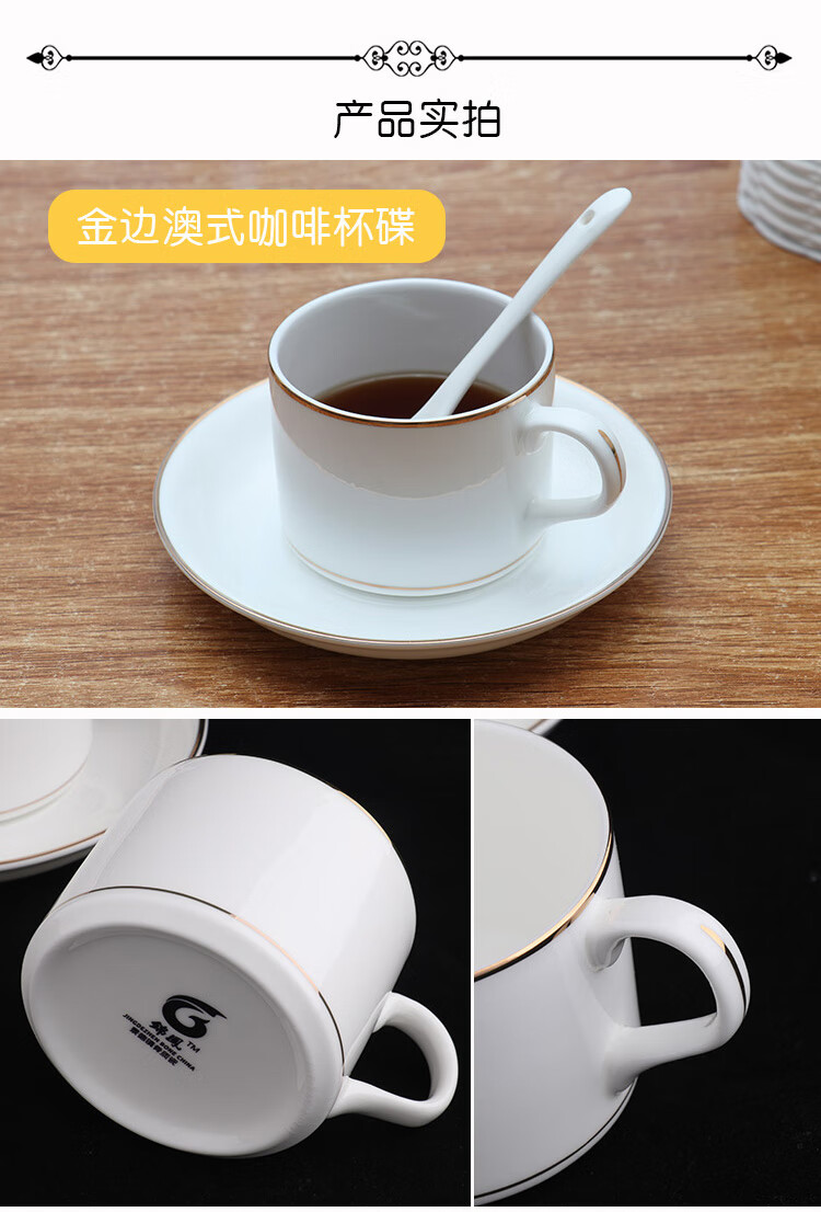 錦鳯锦凤骨瓷咖啡杯碟景德镇欧式简约咖啡套具矮 咖啡杯一杯一碟1勺 纯白澳式单杯