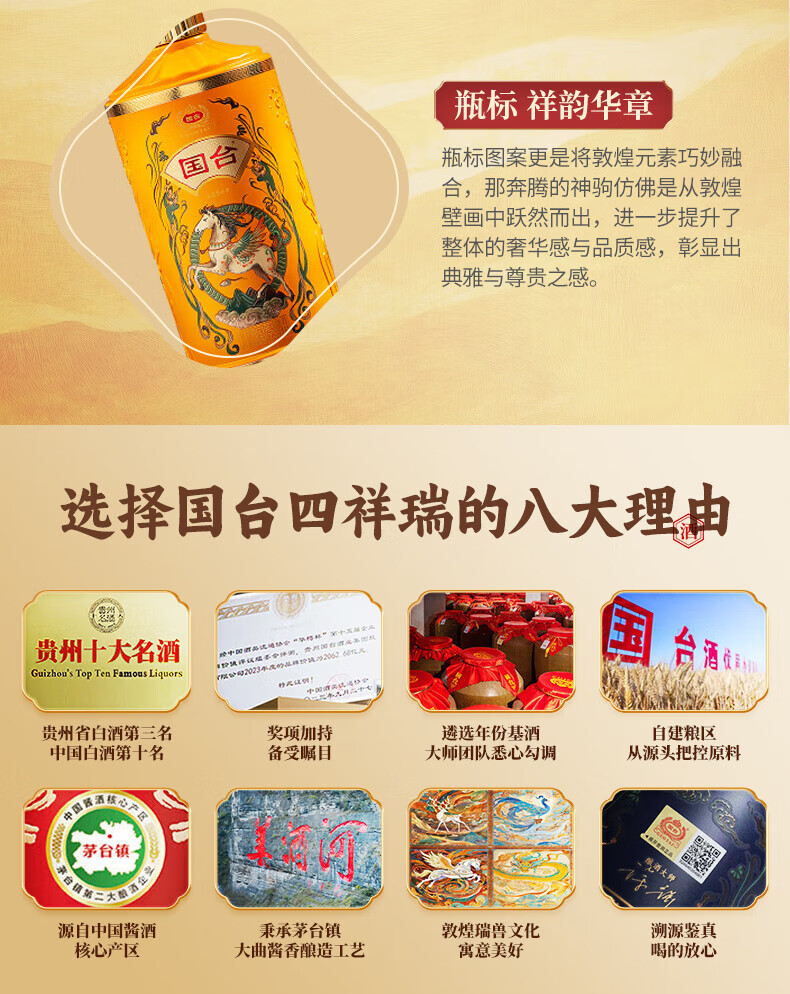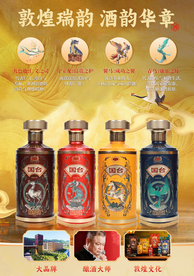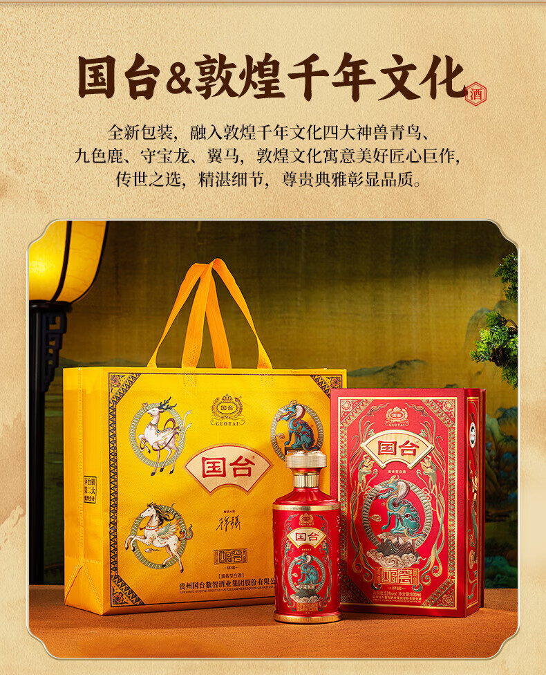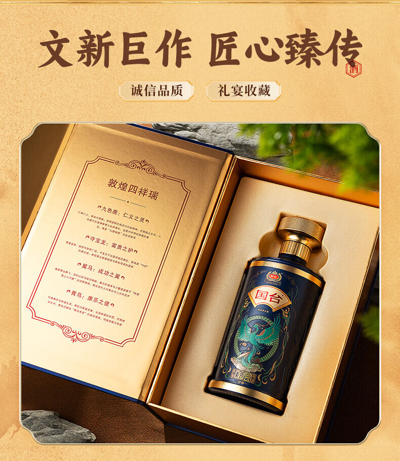 国台 酿荟酒·敦煌祥瑞【九色鹿青鸟翼马守宝龙】酱香型白酒 收藏送礼 53度 500mL 1瓶 随机发货