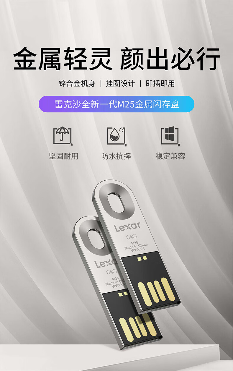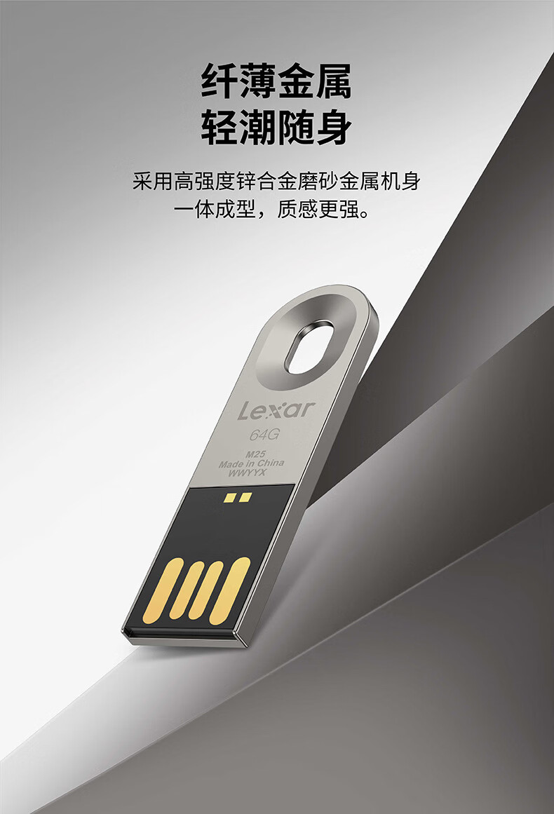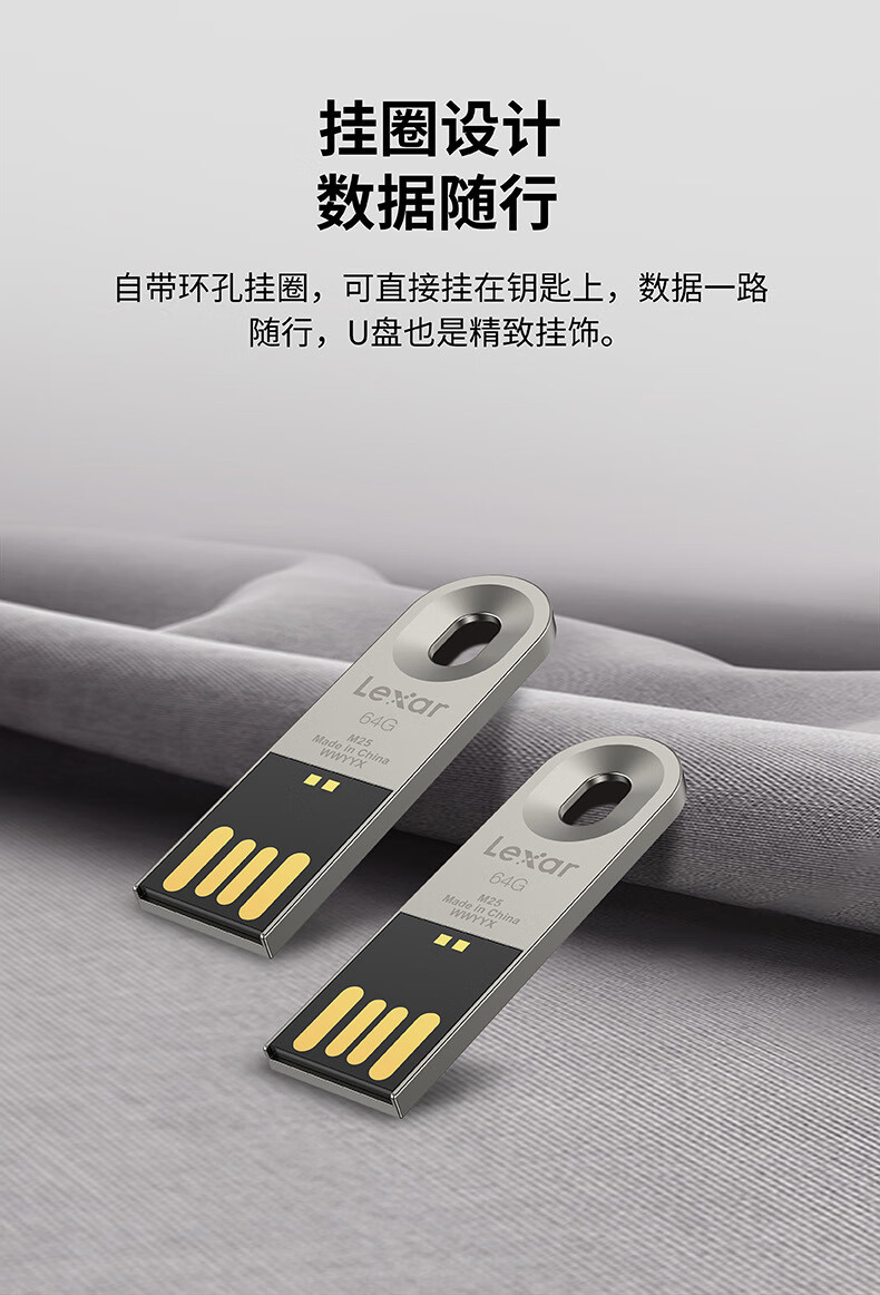 雷克沙【精选百货】金属U盘32G 64G迷你车载办公M25便携小巧钥匙USB2.0闪存盘 1KB 32GB