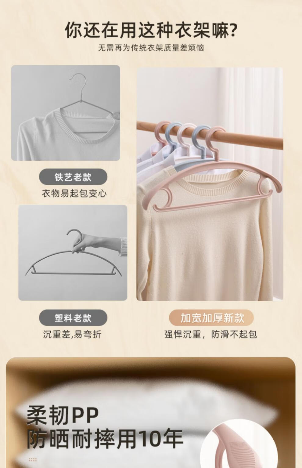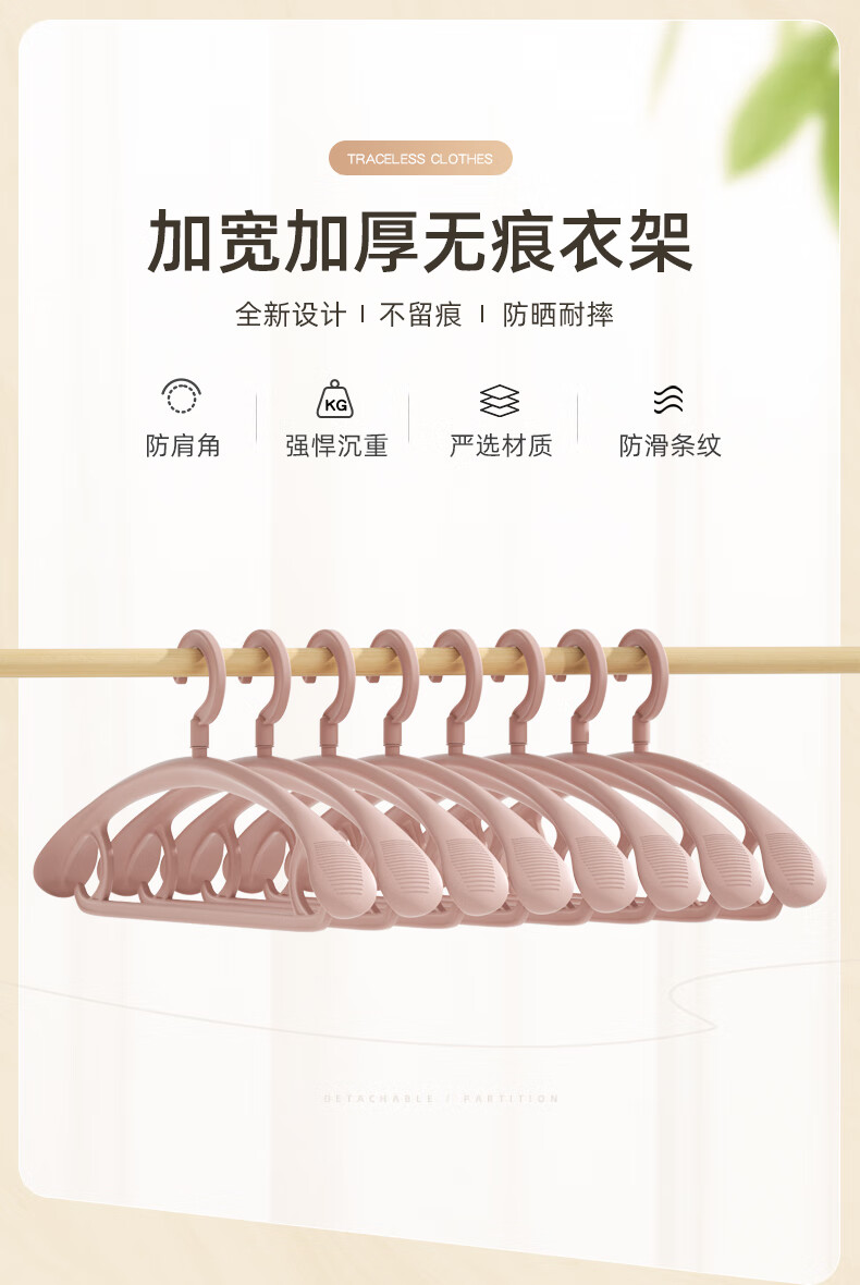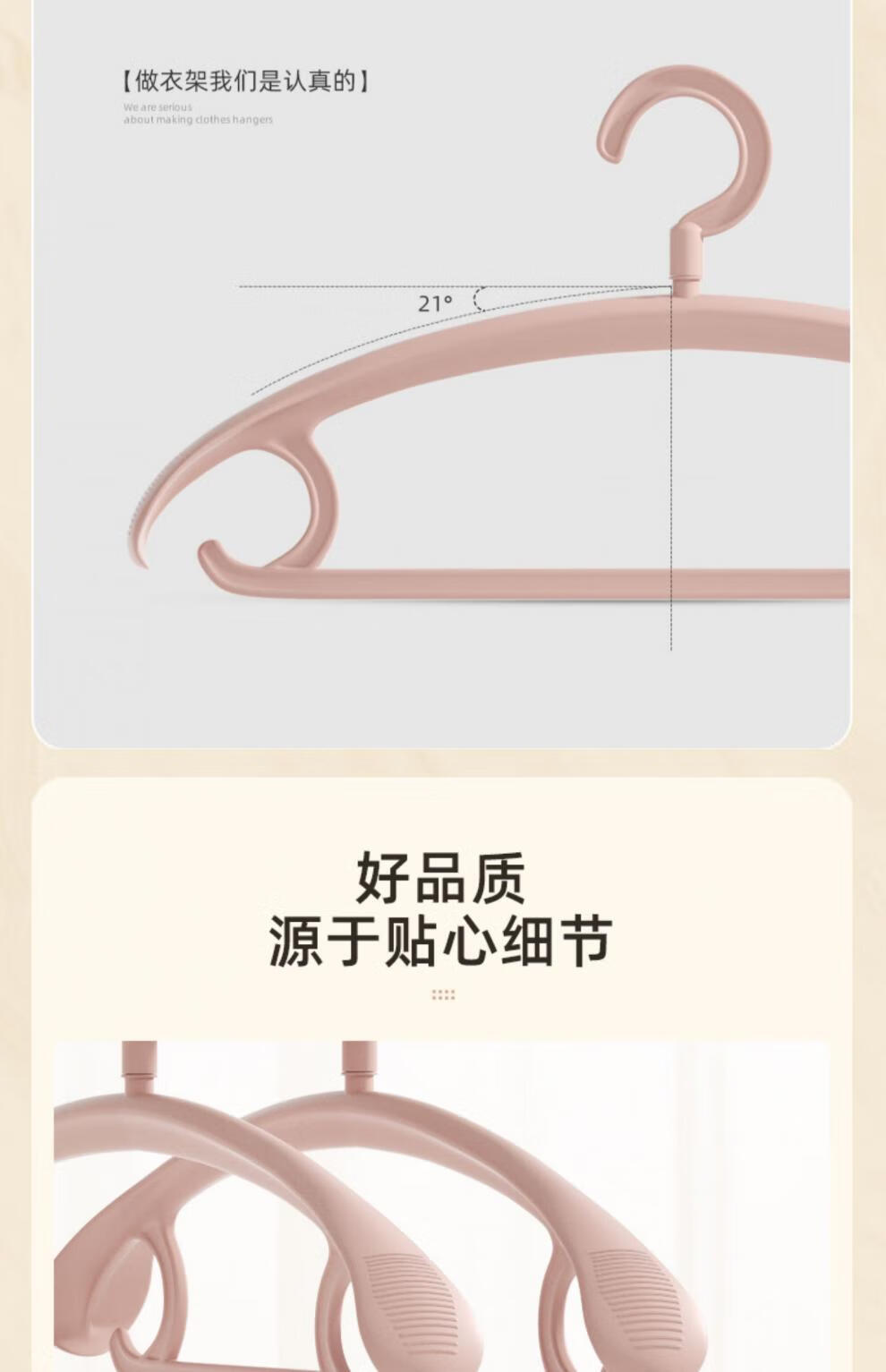 JCZS德国加厚衣架家用挂衣加粗加大无痕防肩角不起包卧室大人宽肩防滑 升级特厚丨欧粉色 10个