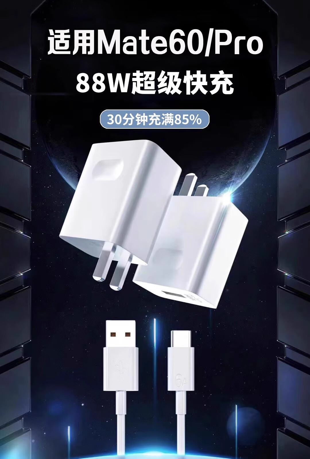 华为(HUAWEI)原装适用于华为Mate60pro充电器88W快充mate60手机充电插头66W快 88W快充头+2米线Mate60Pro专用