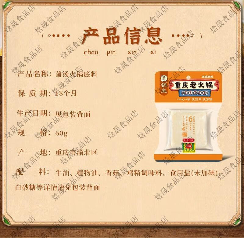 食芳溢佳仙重庆菌汤未加碘火锅底料60g牛油清汤不辣无碘调料甲I亢食用 菌汤火锅底料60g*2包