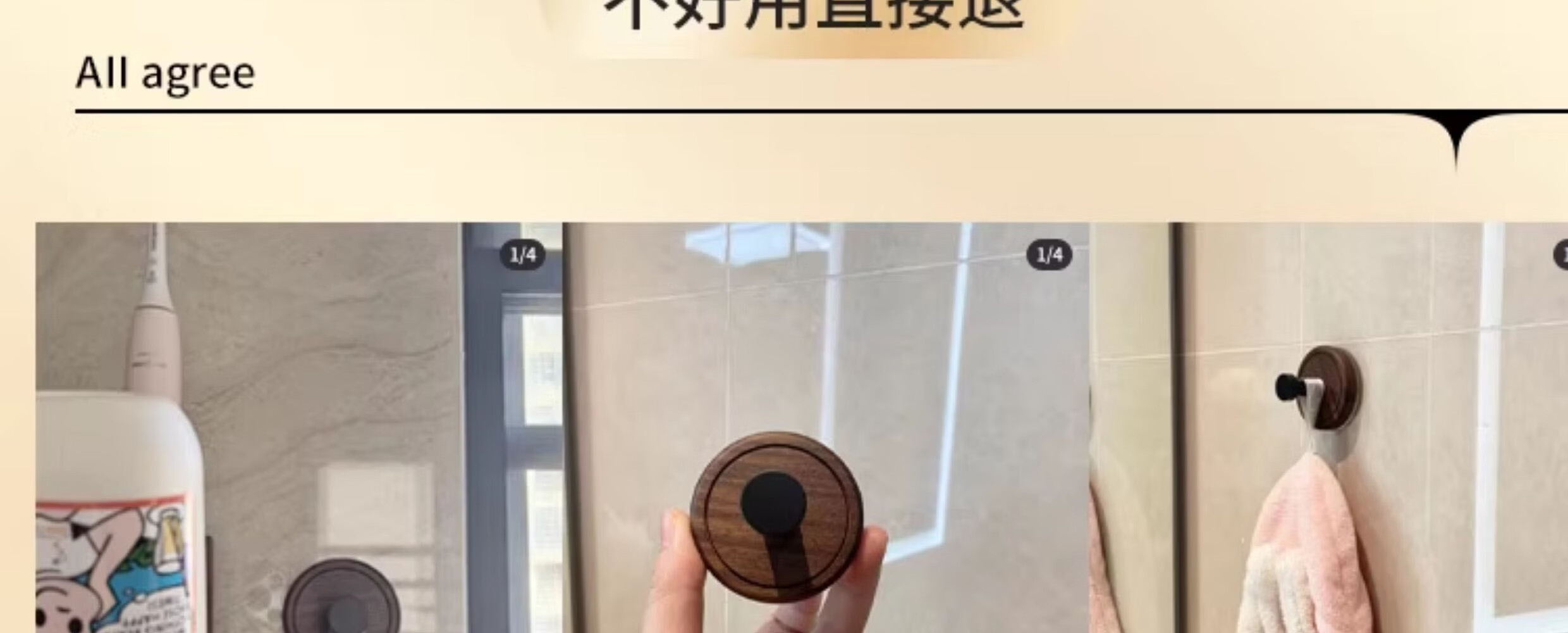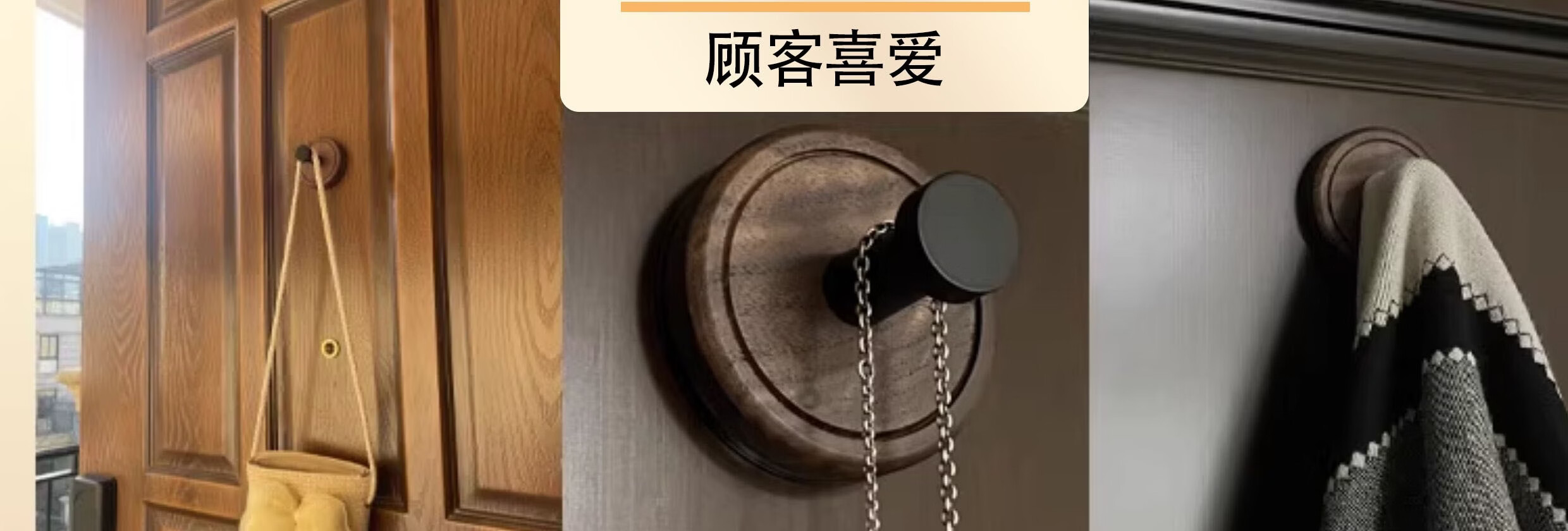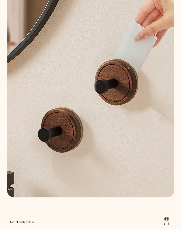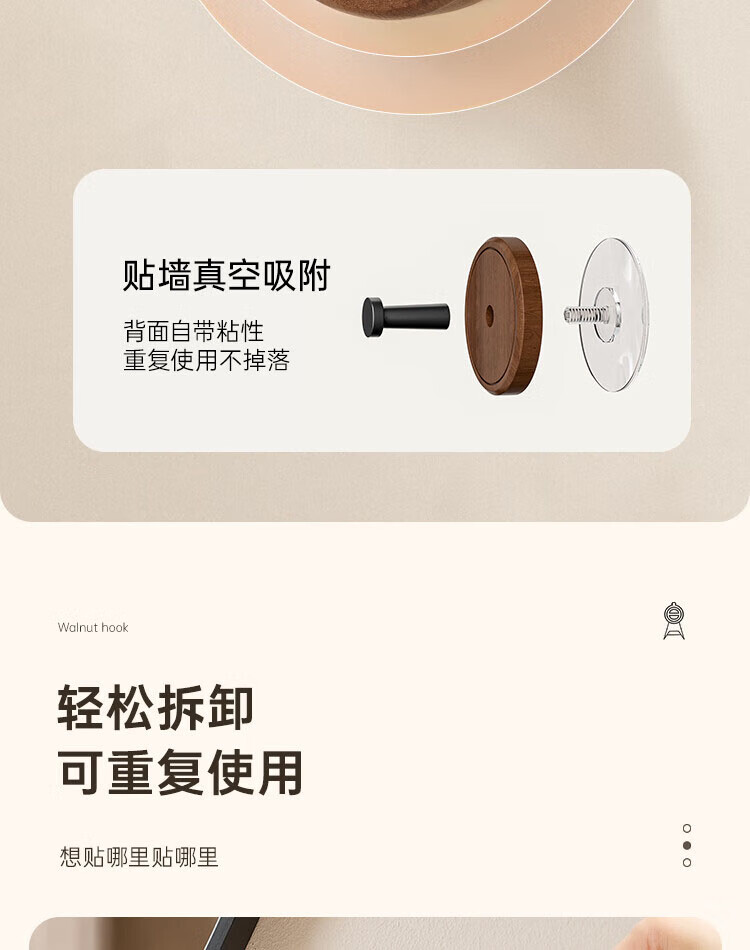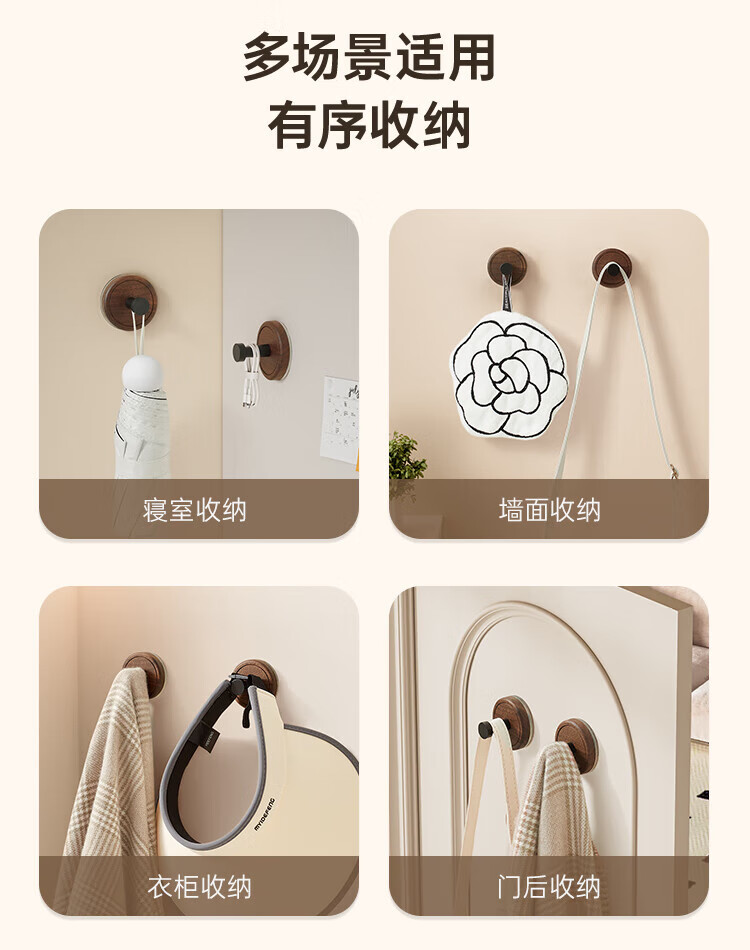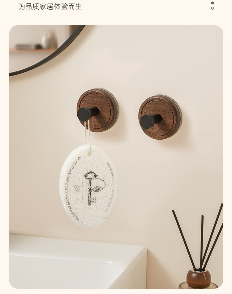 贝凯琳中古风胡桃原木吸盘挂钩玄关门后厨房衣柜无痕挂钩卫生间浴室粘钩 【FAS级黑胡桃木】-枪灰1个装【真空吸附】