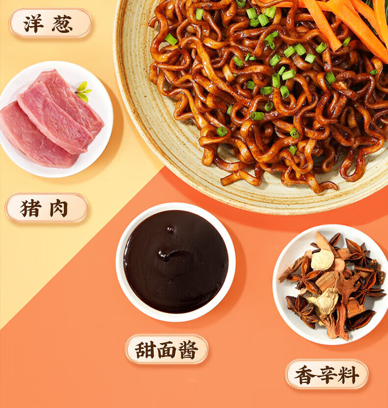 味滋源炸酱面拌面速食方便速食网红干拌面 夜宵早餐饱腹方便面 102g*5袋