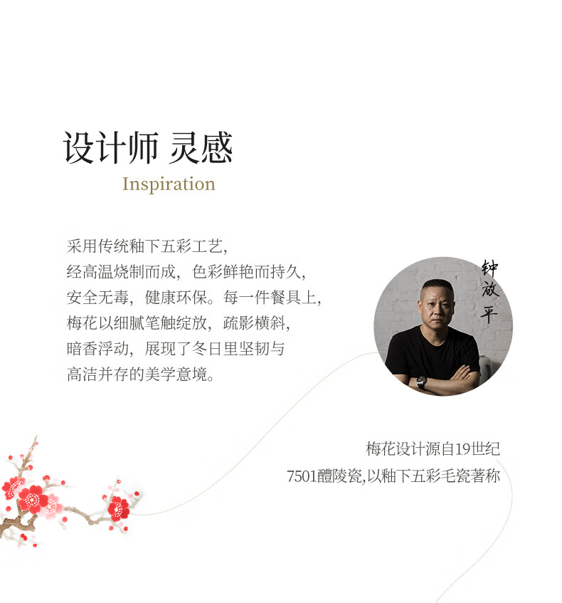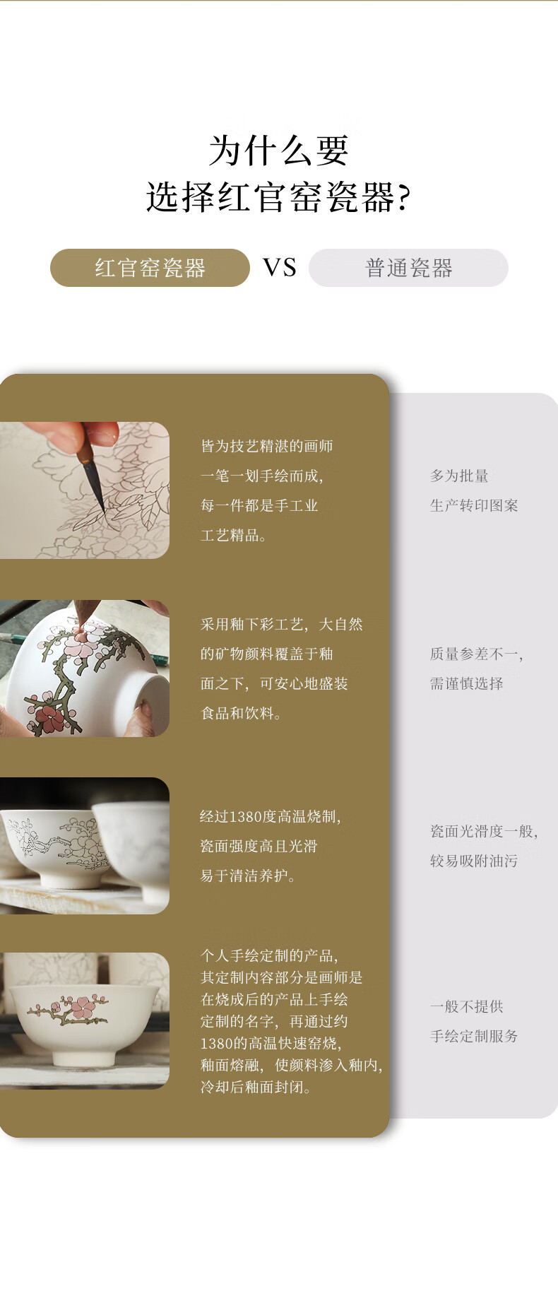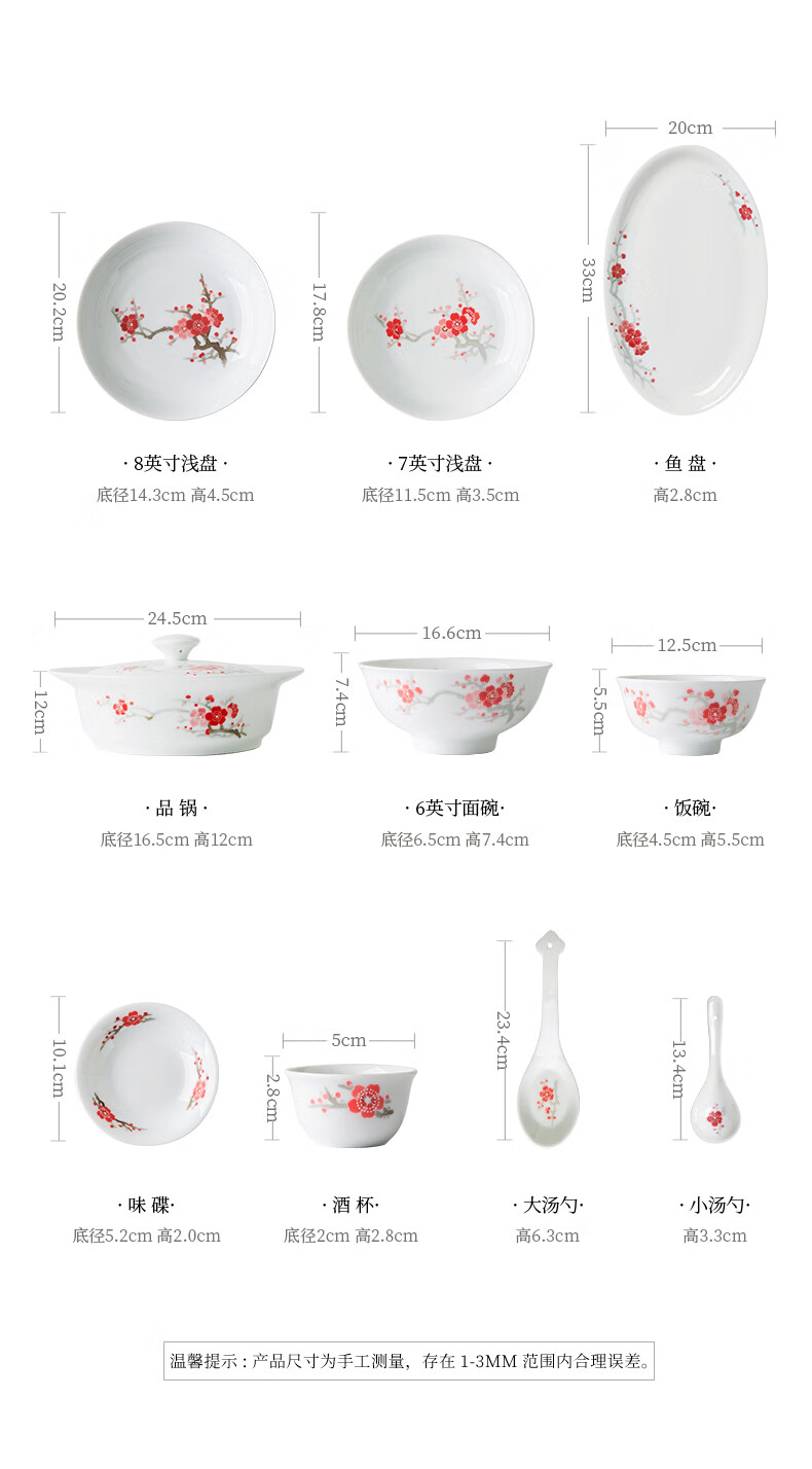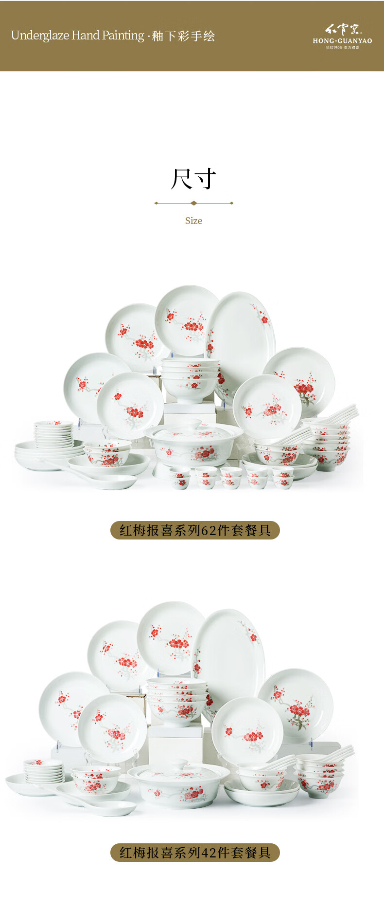 红官窑红梅报喜餐具整套碗盘釉下彩耐高温白瓷结婚乔迁新房送长辈礼陶瓷 红梅报喜20头【锦盒装】6人食