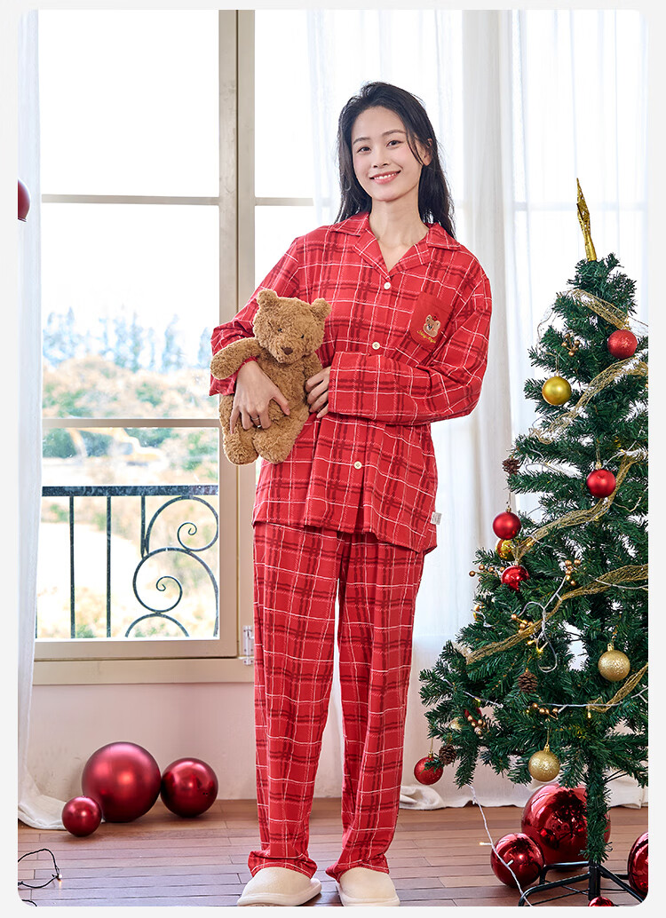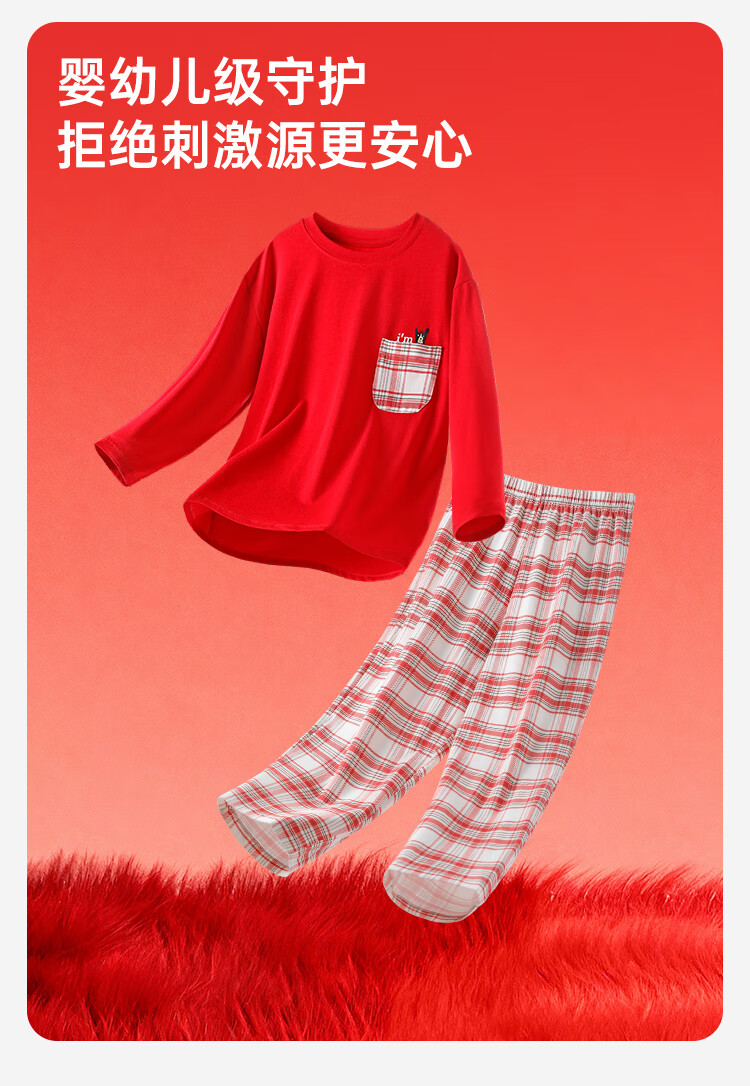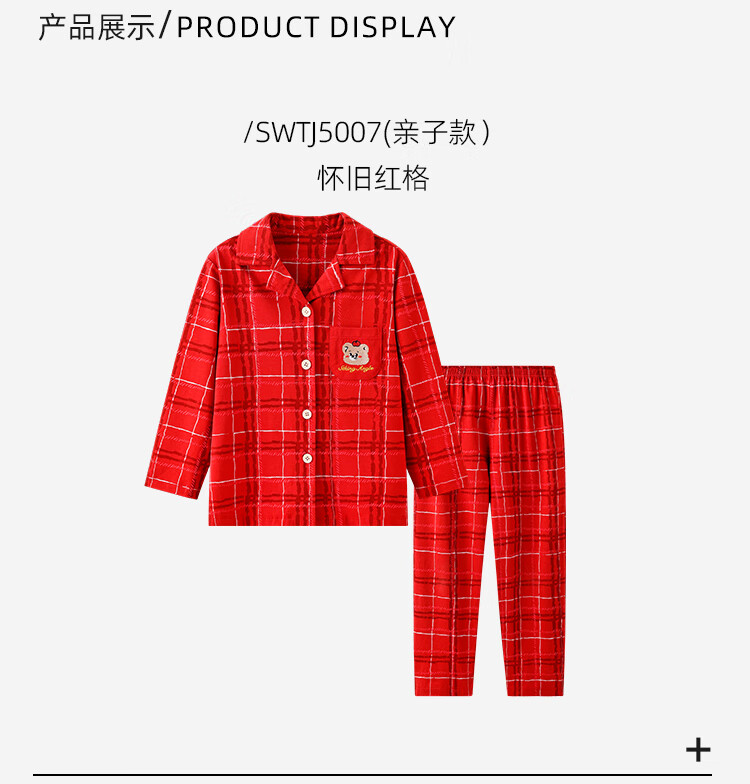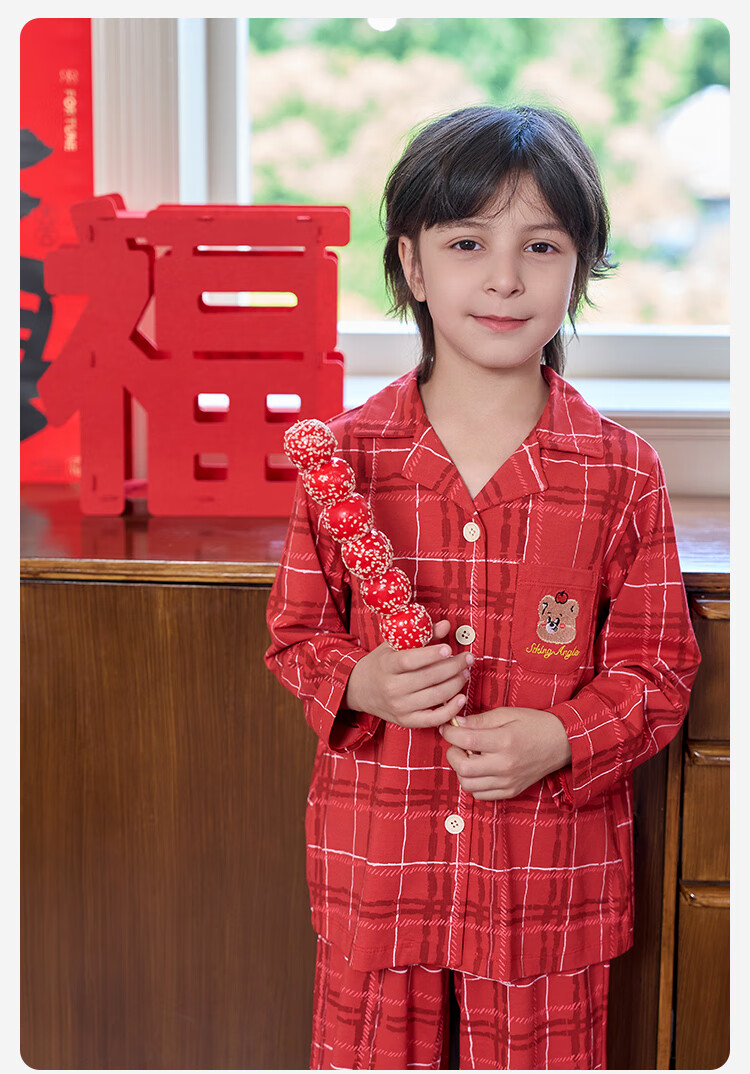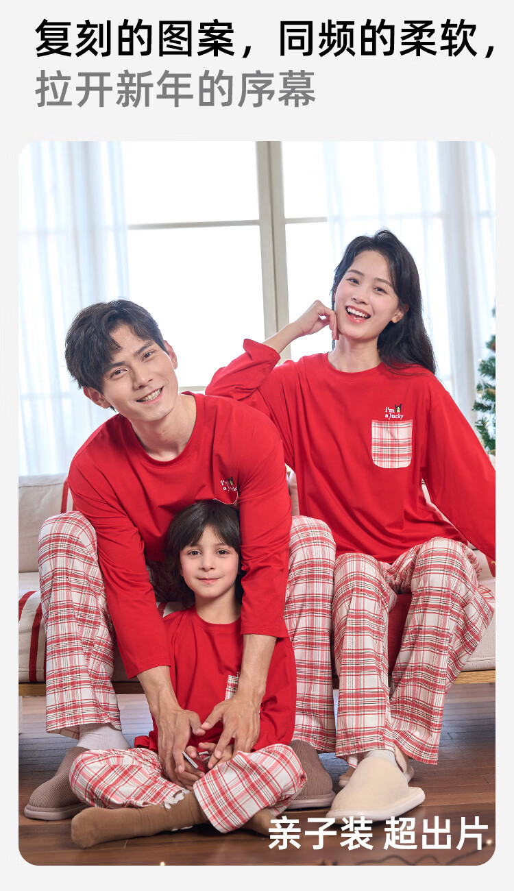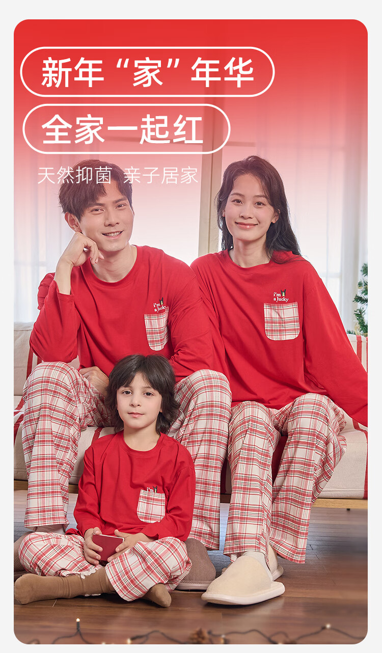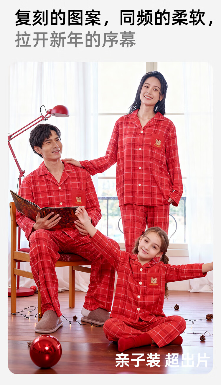 盛凯安琪儿童【本命年】套装【百草百合3A抑菌】新年亲子装一家四口家居服 怀旧红格-男成人 180 建议拍大一码