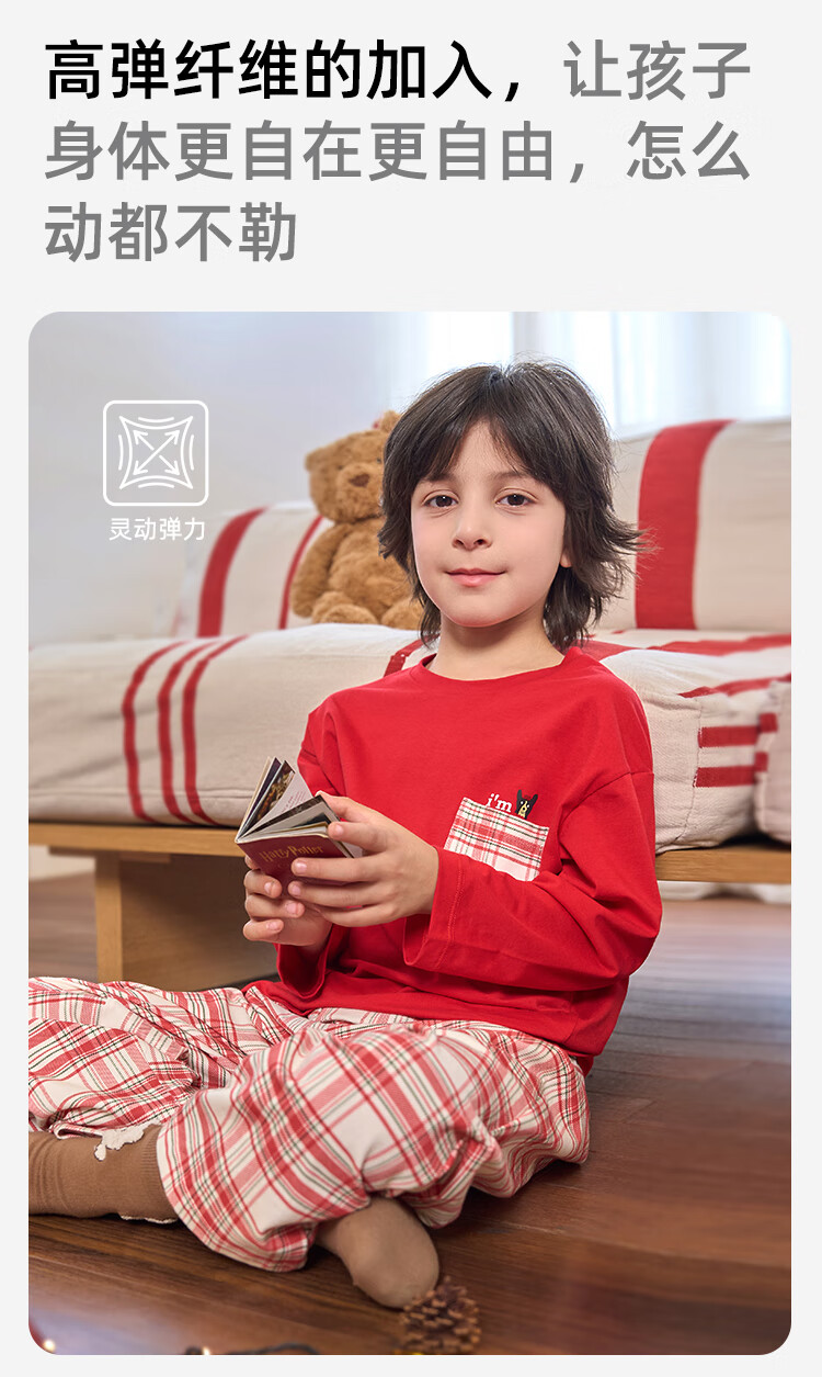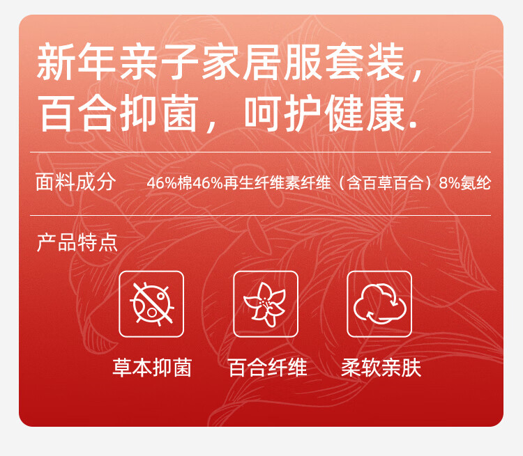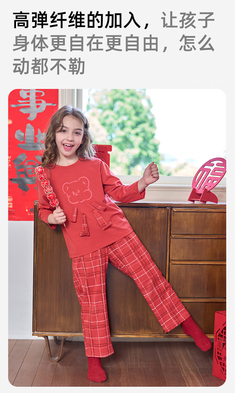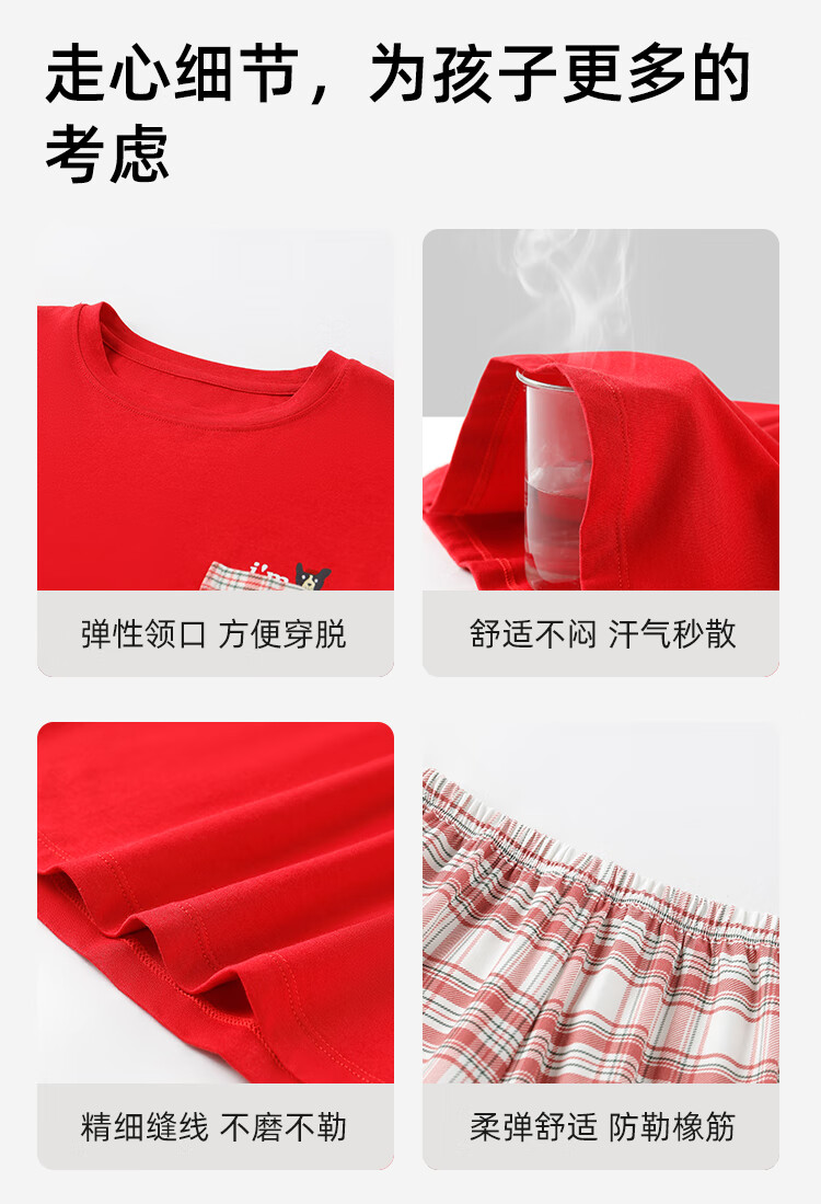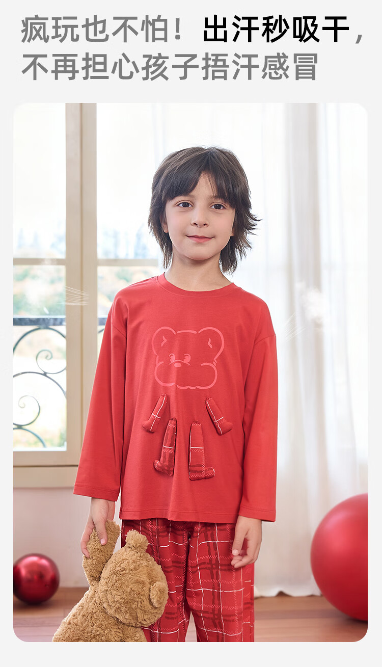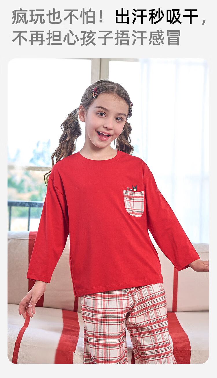 盛凯安琪儿童【本命年】套装【百草百合3A抑菌】新年亲子装一家四口家居服 怀旧红格-男成人 180 建议拍大一码