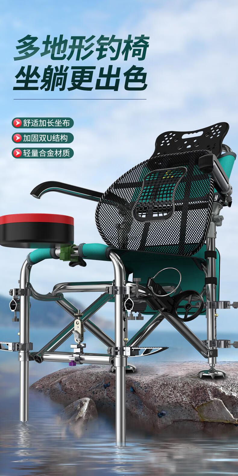 渔之源(Yuzhiyuan)钓椅2022折叠便携多功能钓鱼椅子结实小座椅凳子多地形轻便坐椅 【青绿款套餐一】升级轻量铝合金 无规格