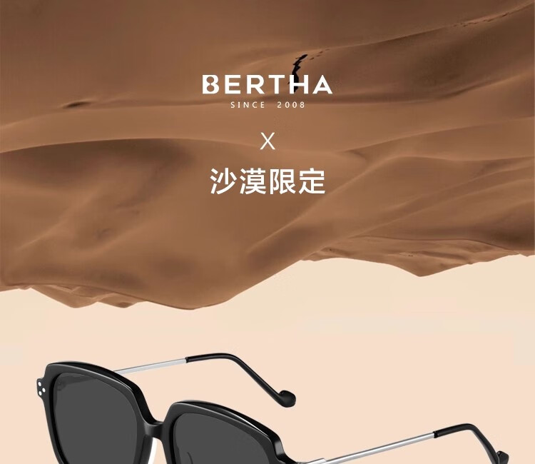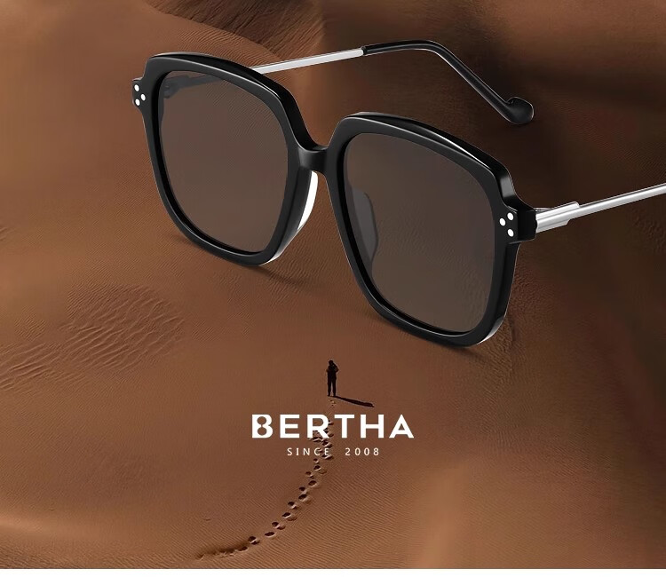 贝尔莎(bertha) 墨镜女款高级感大脸近视偏光太阳眼镜男开车防晒防紫外 【哈气防伪标】黑框黑灰片350度