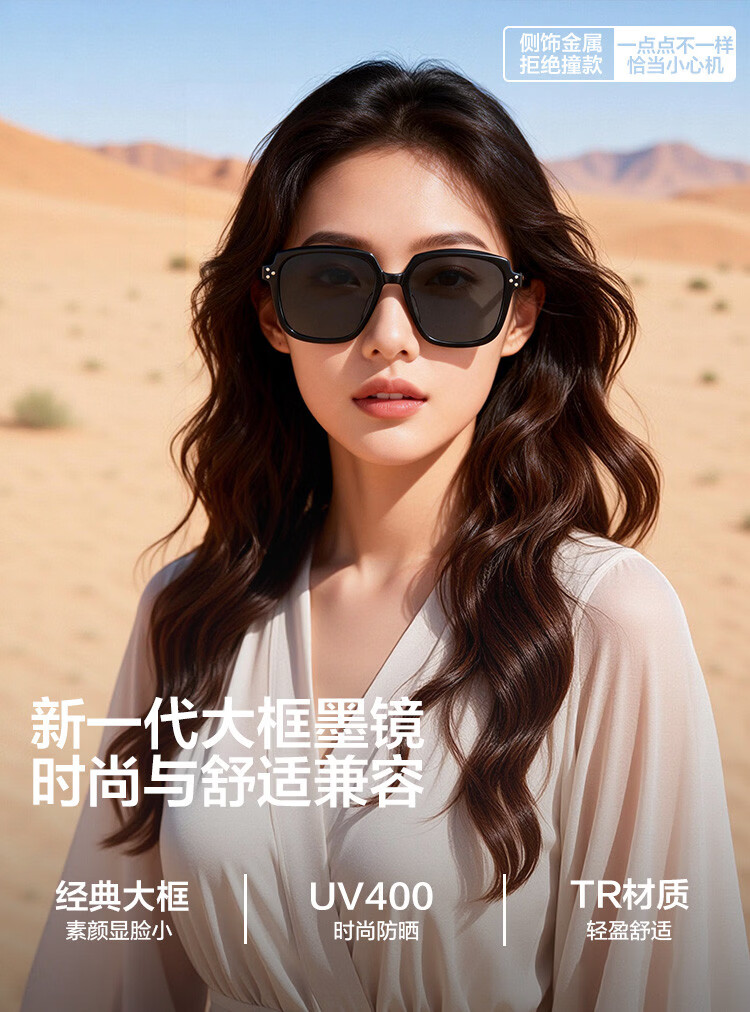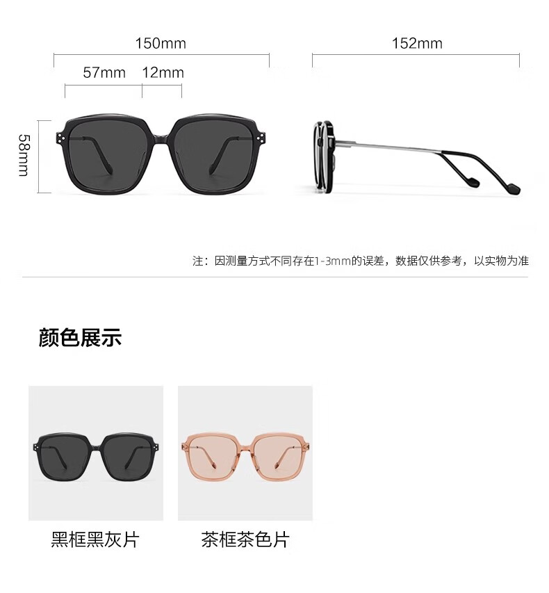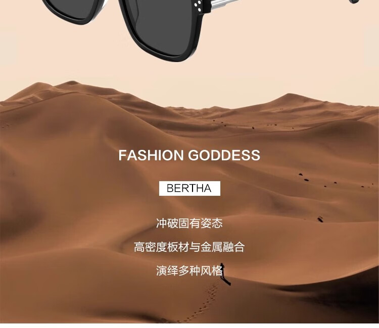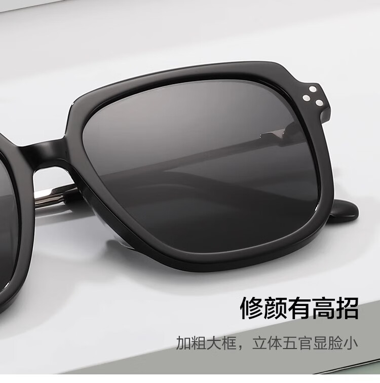 贝尔莎(bertha)墨镜男防晒GM猫眼女太阳镜高级感新款防紫外线近视墨镜 A款 黑框 黑灰镜片