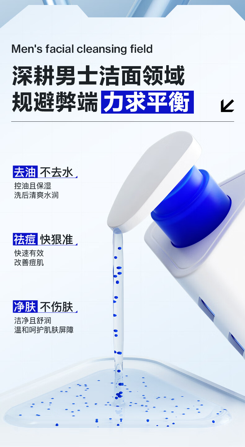米云男士洗面奶氨基酸洁面控油净痘清洁毛孔洁面乳敏感肌学生男洗面乳 【店铺热销TOP1】控油净痘单瓶装