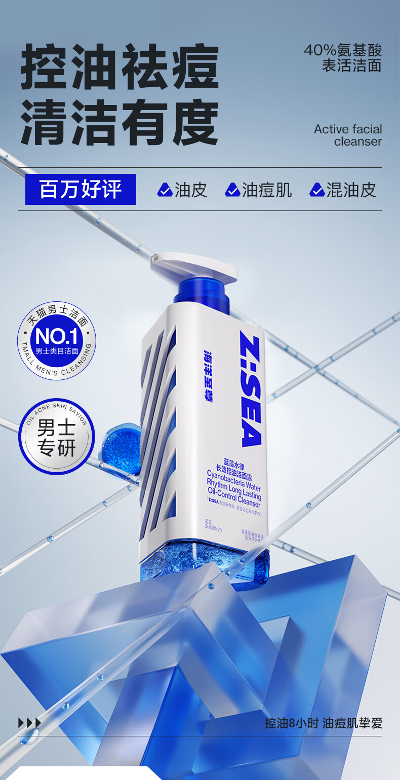 海洋至尊三棱镜氨基酸控油男士洗面奶150g 去黑头祛痘洁面护肤品 送男友
