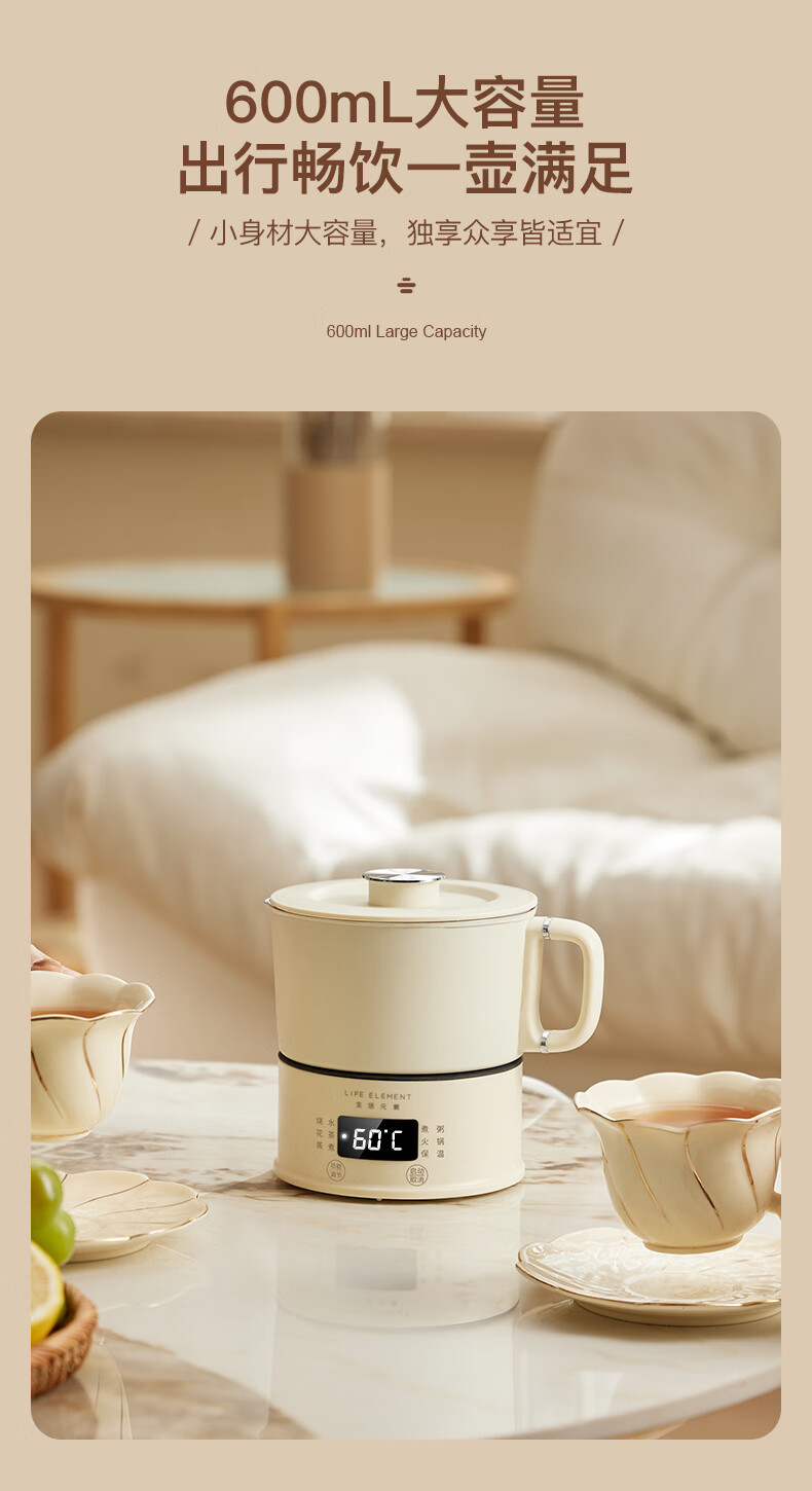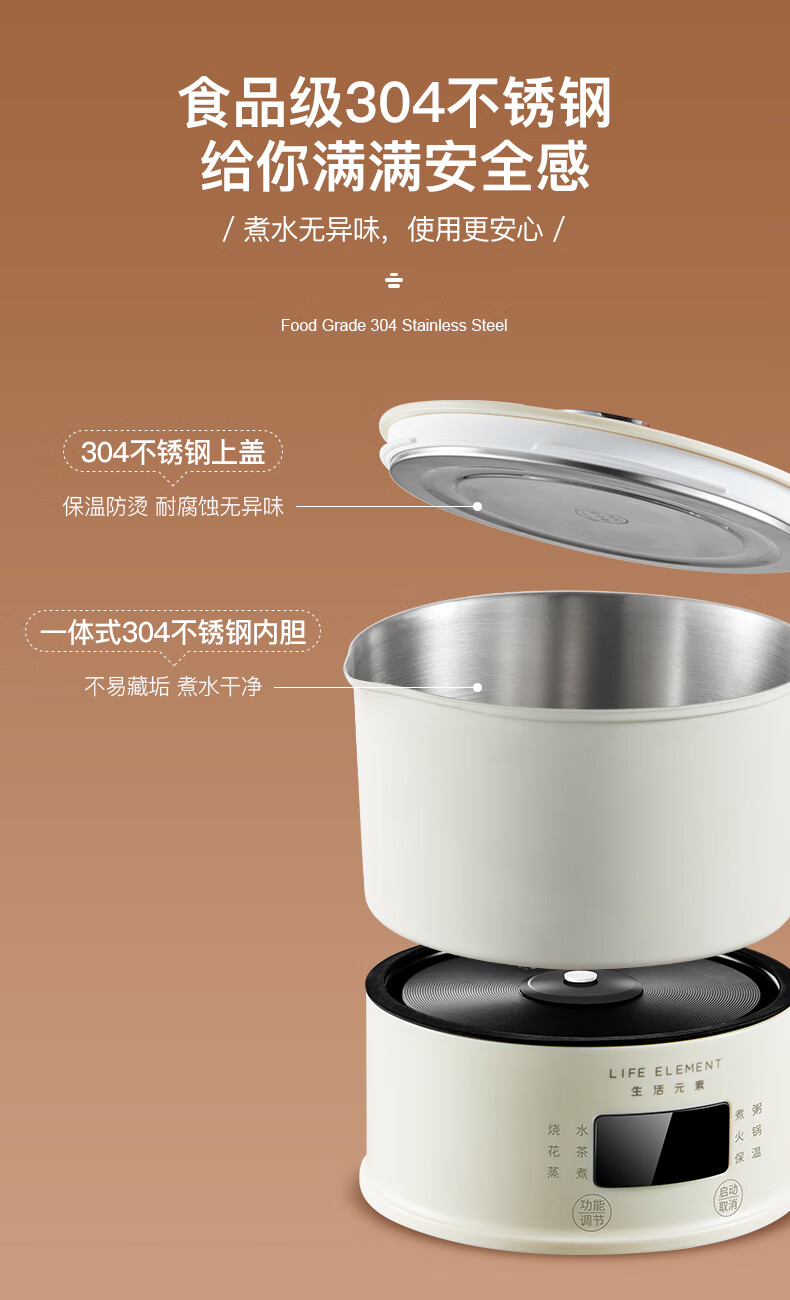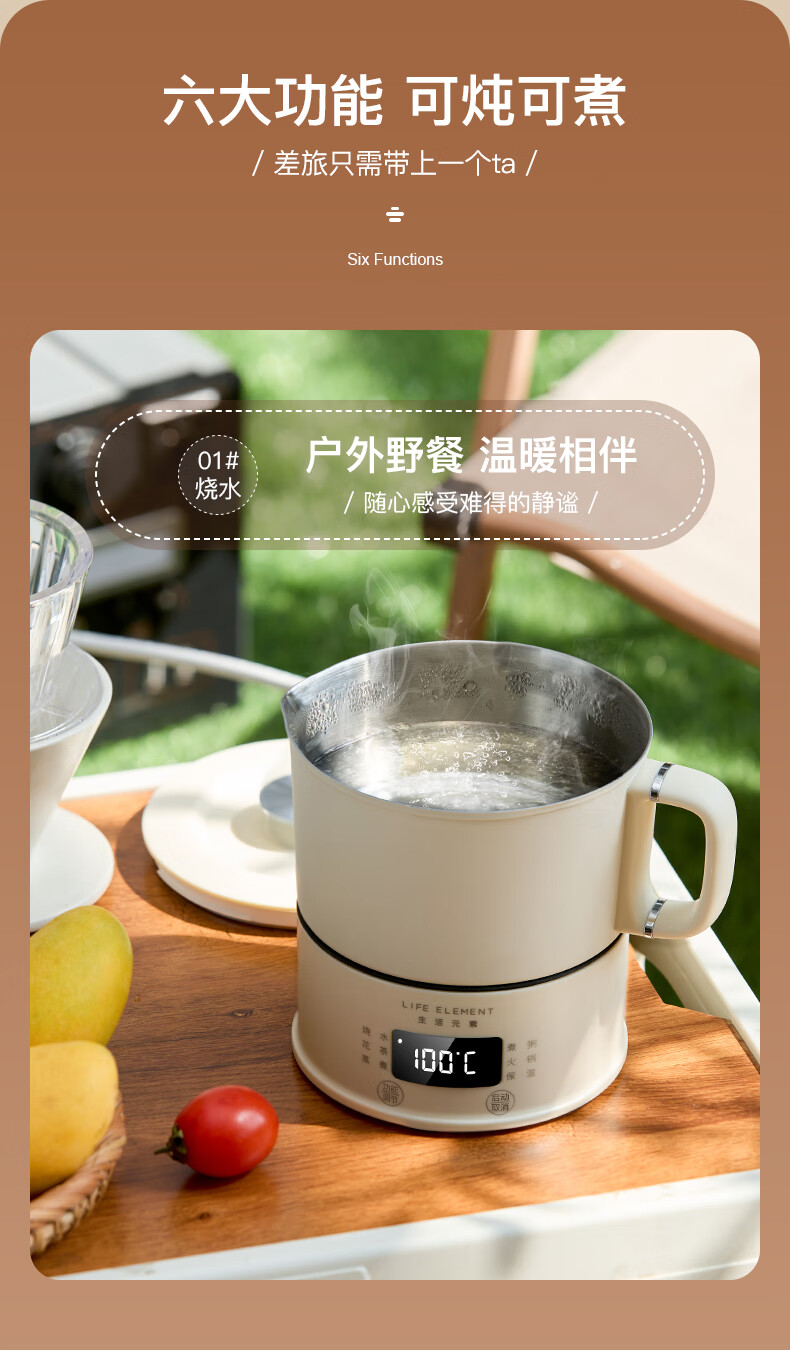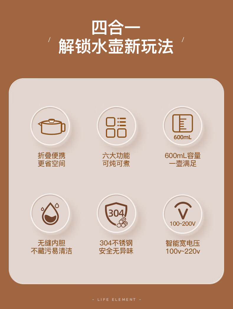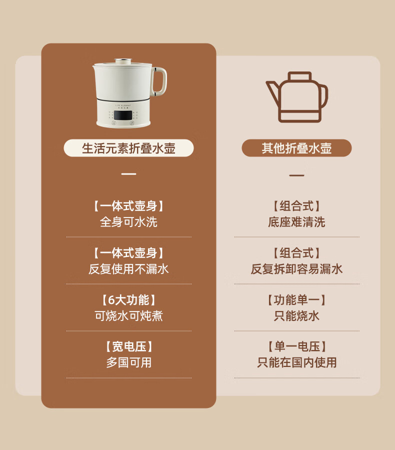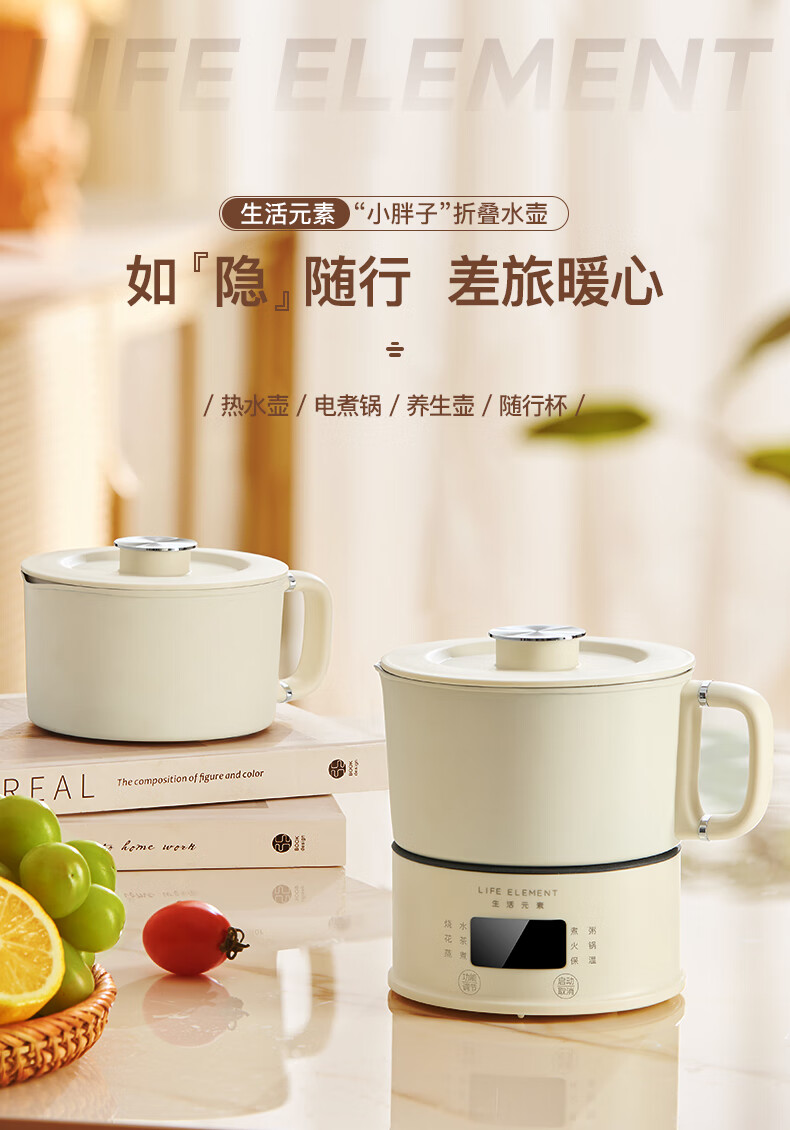 生活元素(LIFE ELEMENT)折叠烧水壶 全球电压 露营差旅迷你便携304不锈钢抗摔耐用 分体收纳户外迷你养生煮水壶 I193