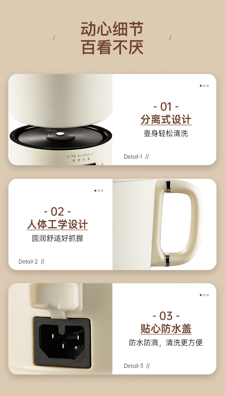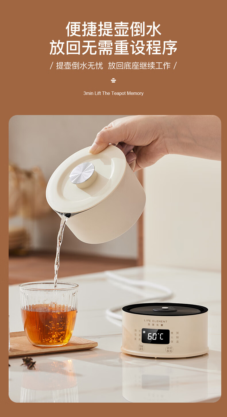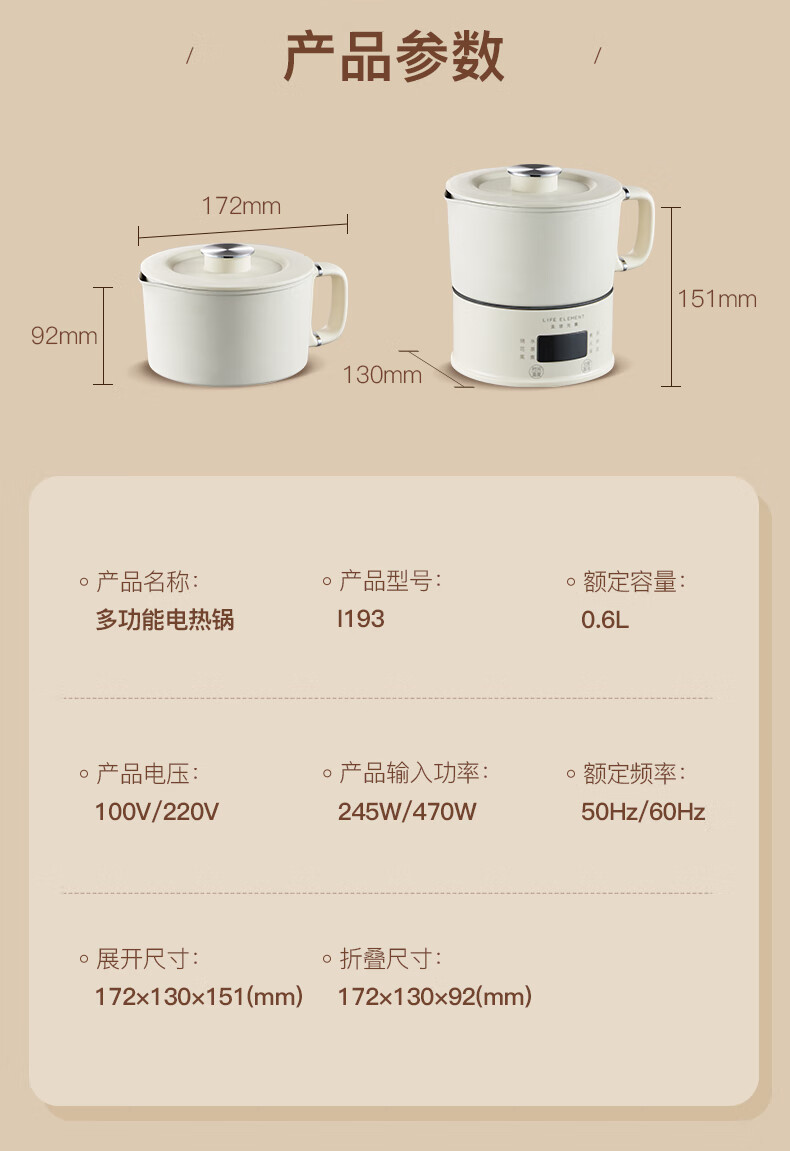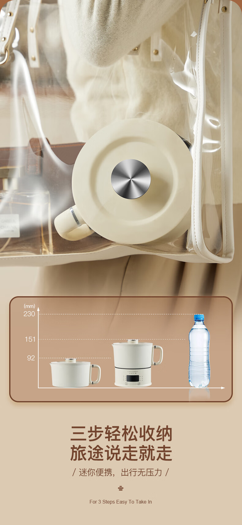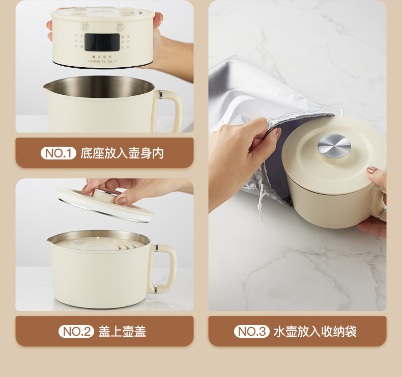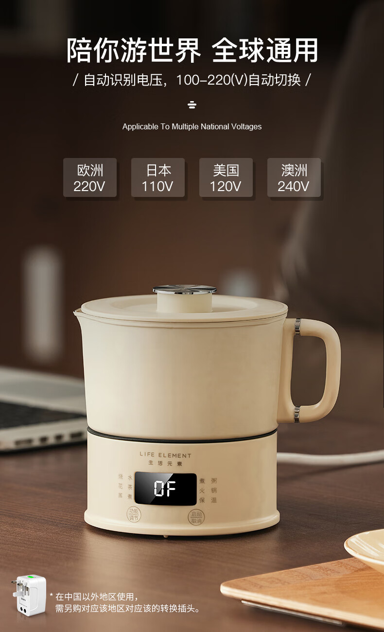 生活元素(LIFE ELEMENT)折叠烧水壶 全球电压 露营差旅迷你便携304不锈钢抗摔耐用 分体收纳户外迷你养生煮水壶 I193