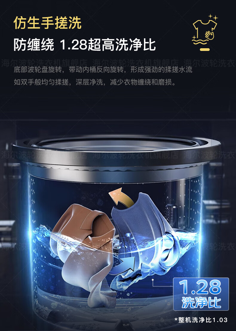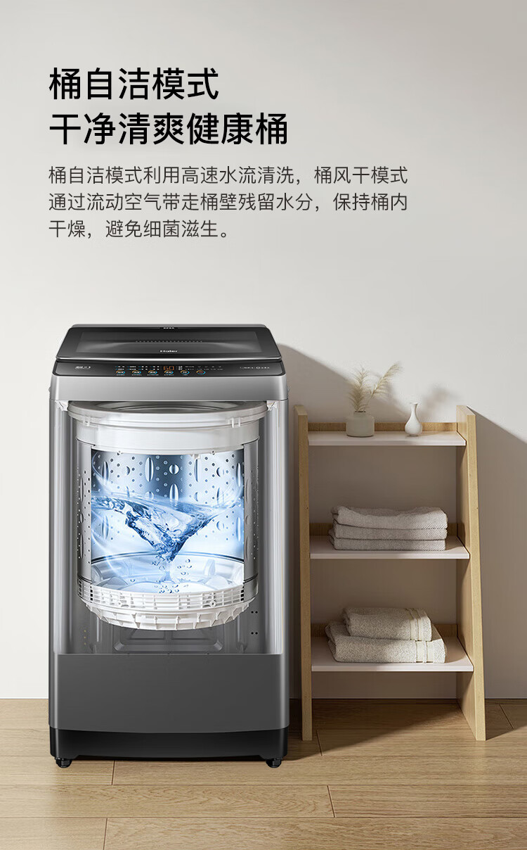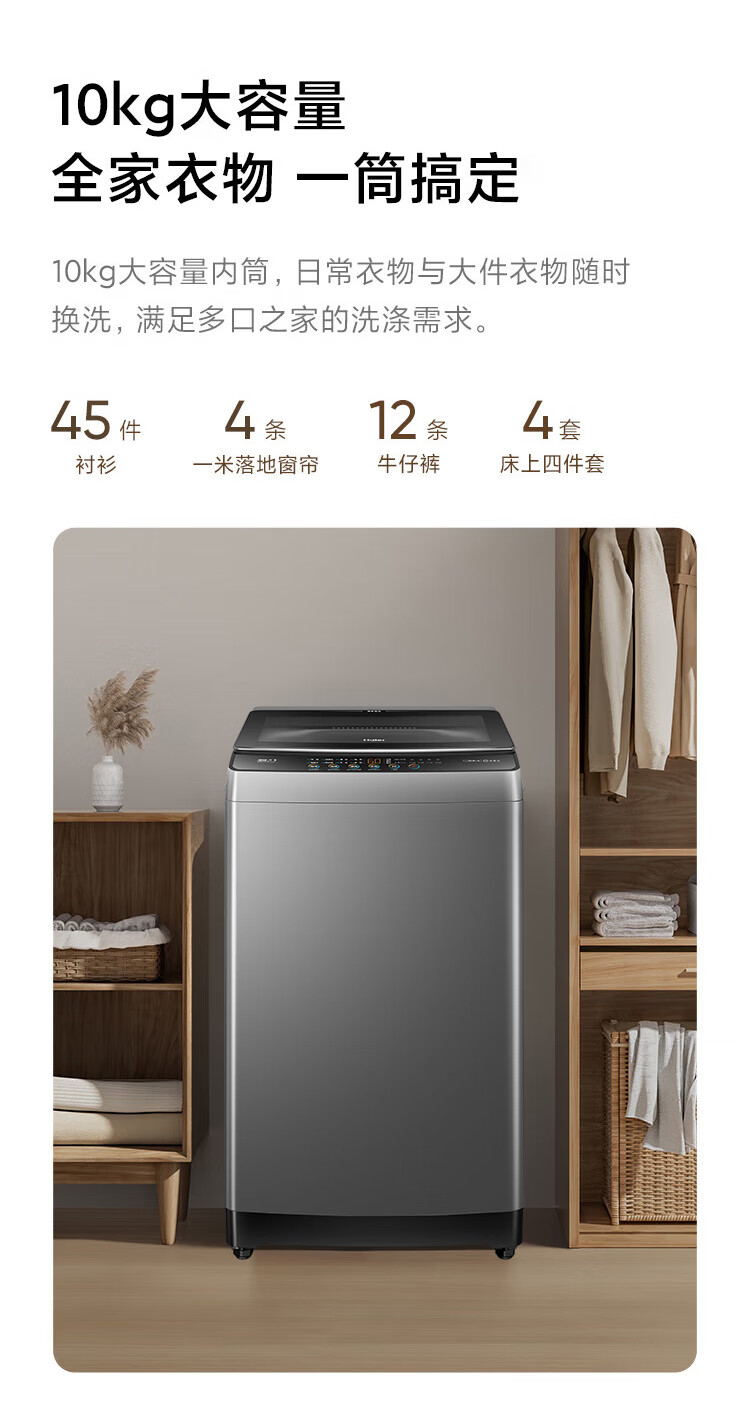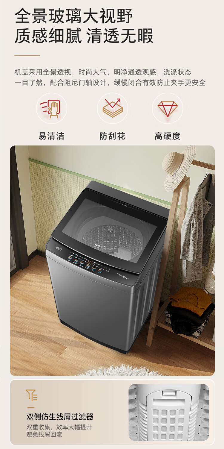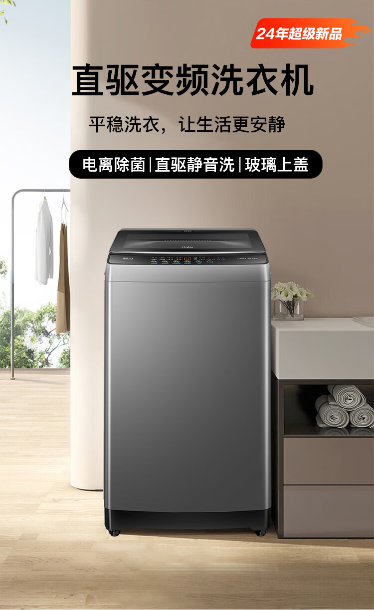 Haier海尔洗衣机全自动波轮10/12公斤大容量神童洗衣机一级能效直驱变频双动力防缠绕 以旧换新补贴 12公斤直驱静音+钢化玻璃盖+大面板+20年不锈