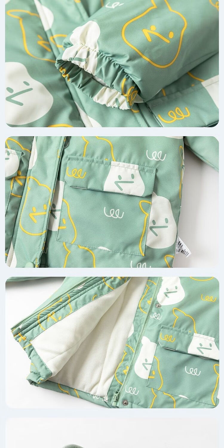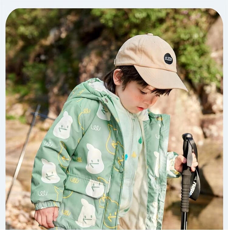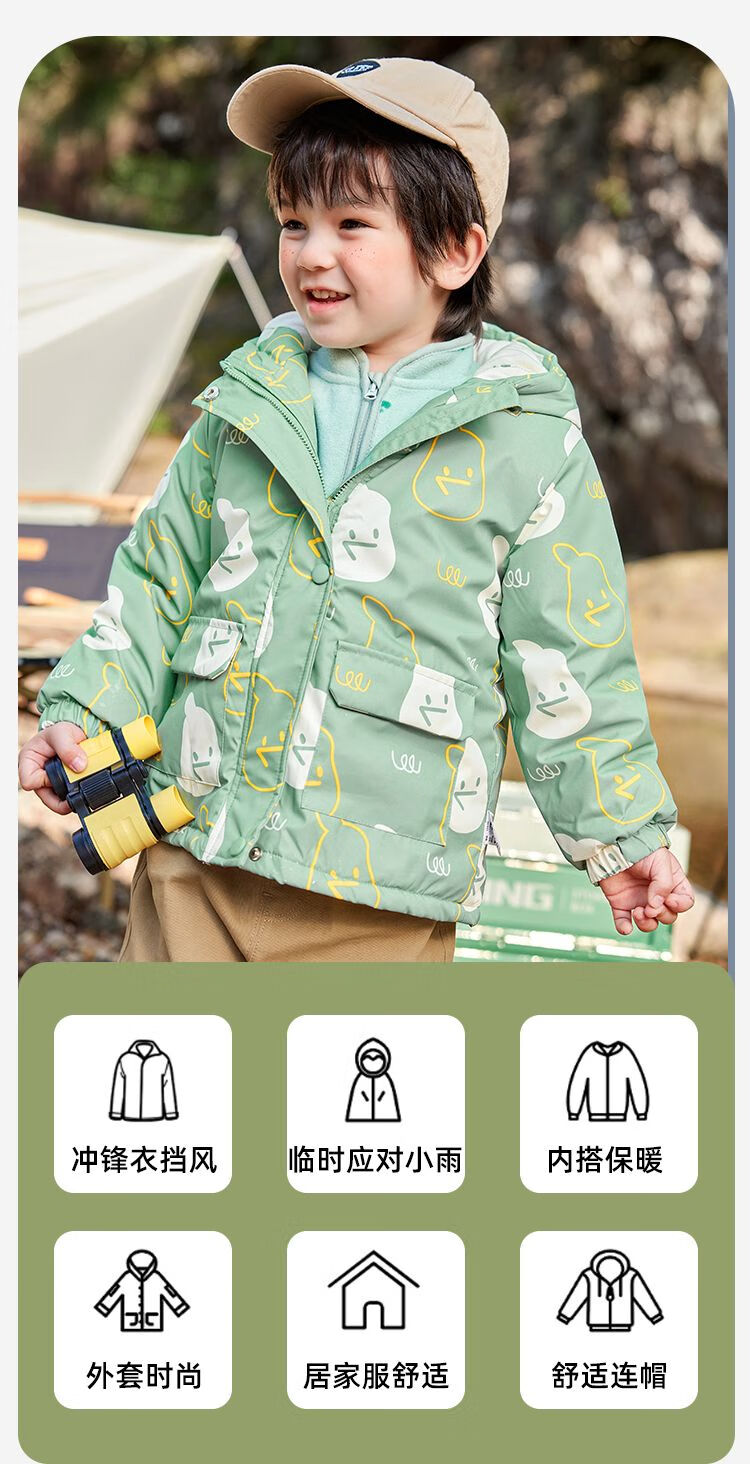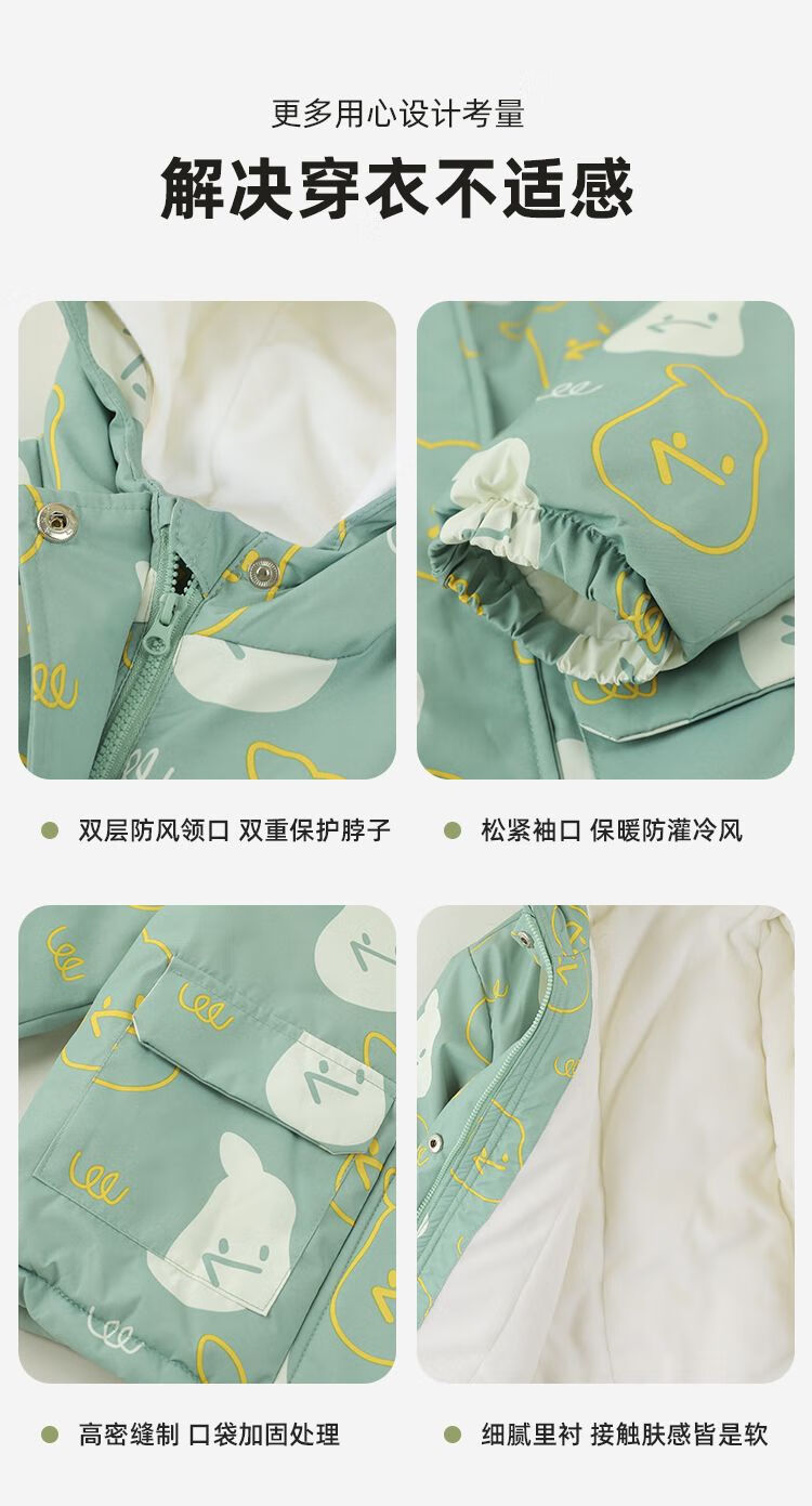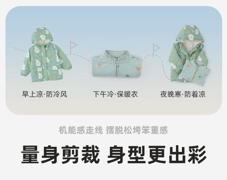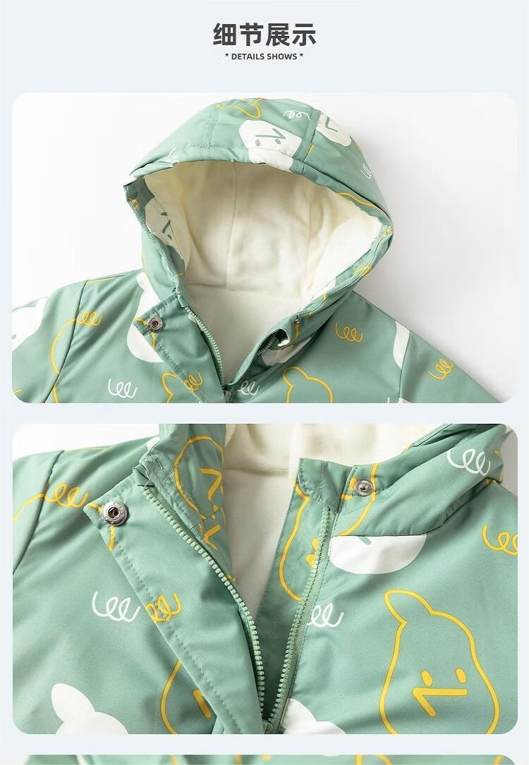 嘟嘟家宝宝防风衣两件套秋冬儿童外套三合一保暖男童上衣女童童装薄荷绿