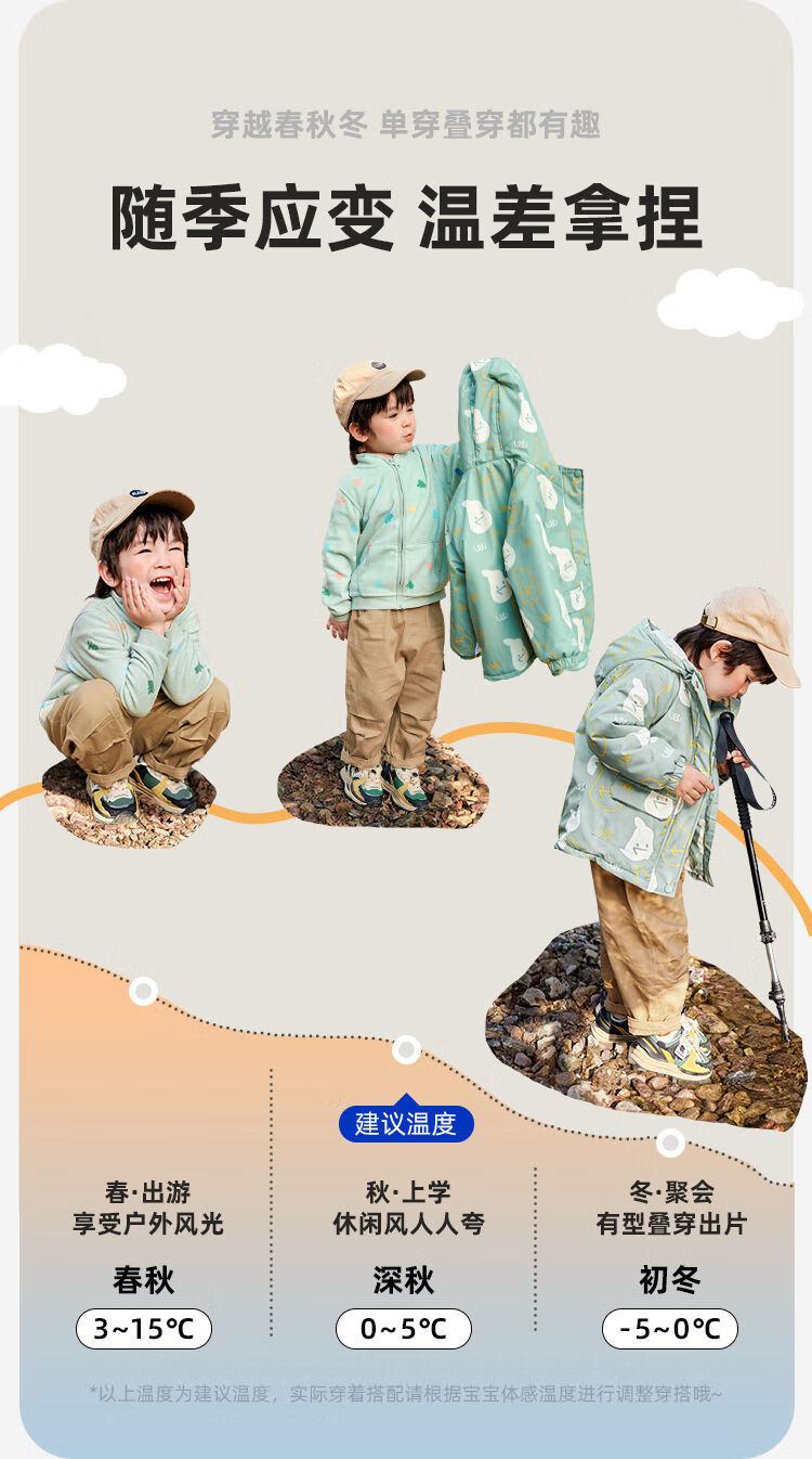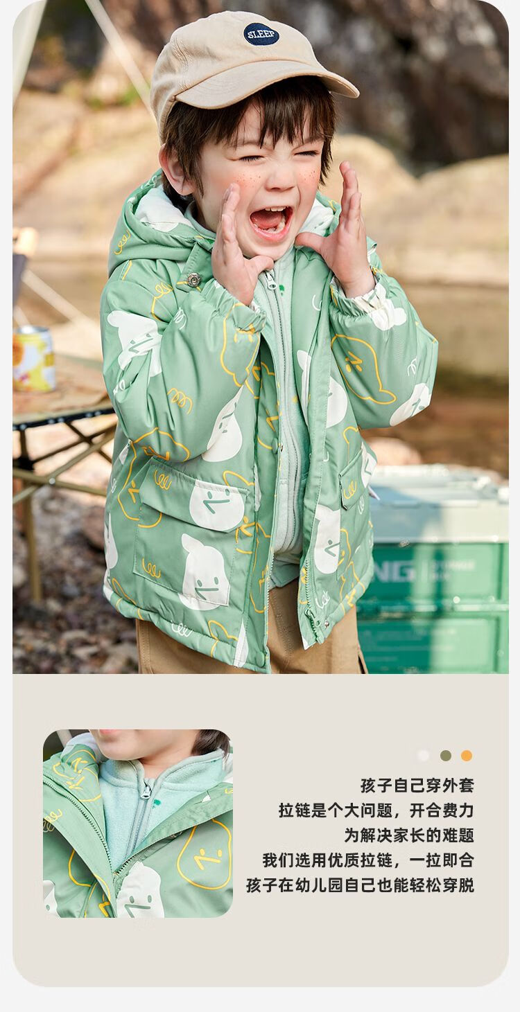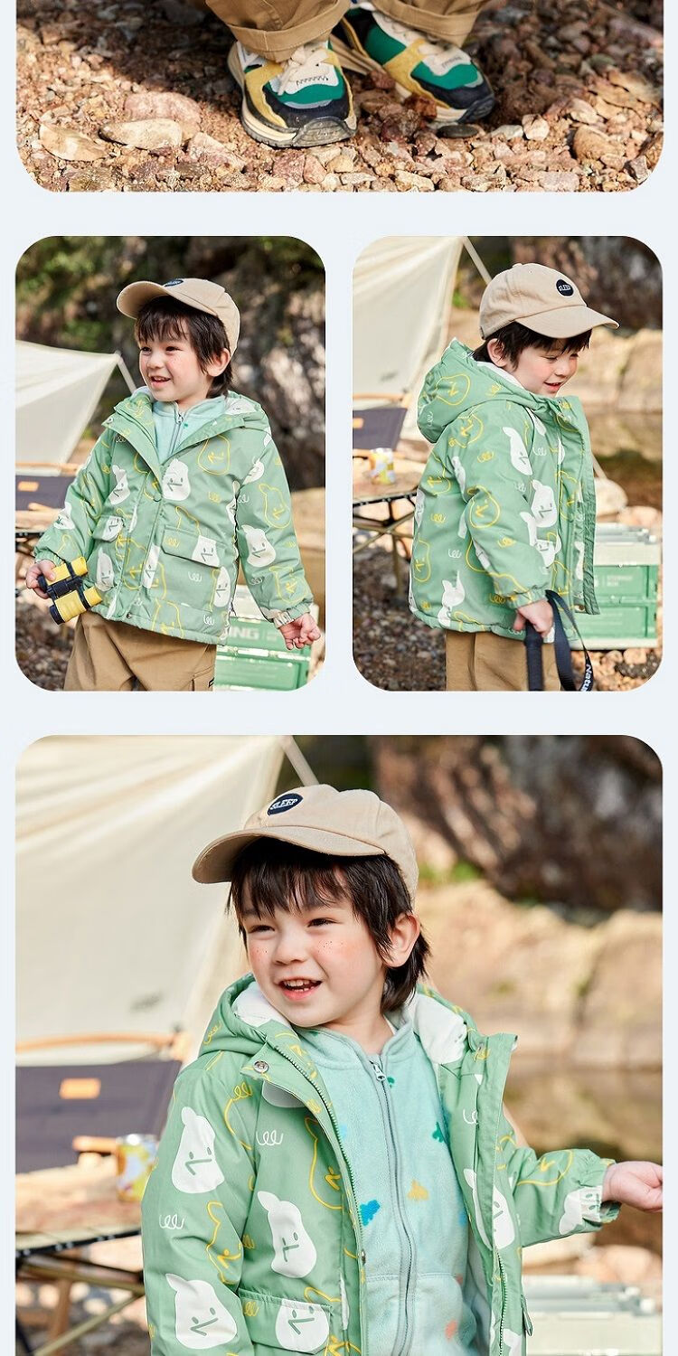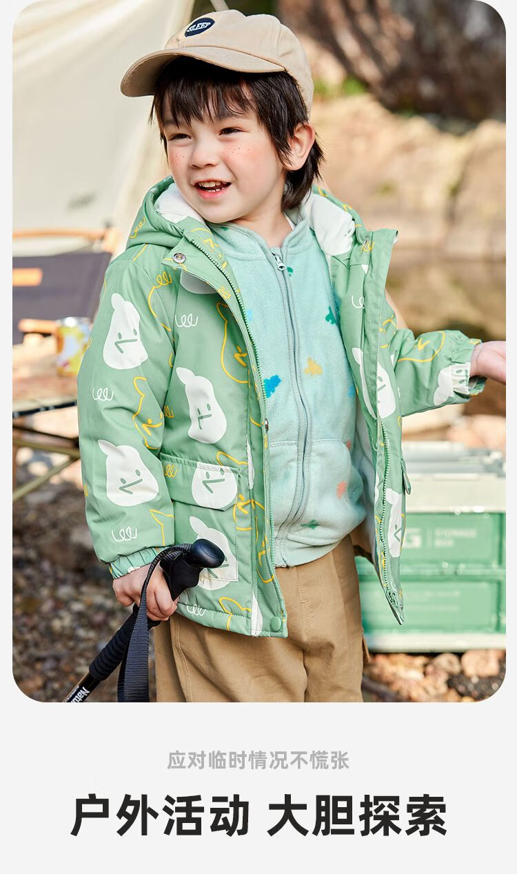 嘟嘟家宝宝防风衣两件套秋冬儿童外套三合一保暖男童上衣女童童装薄荷绿