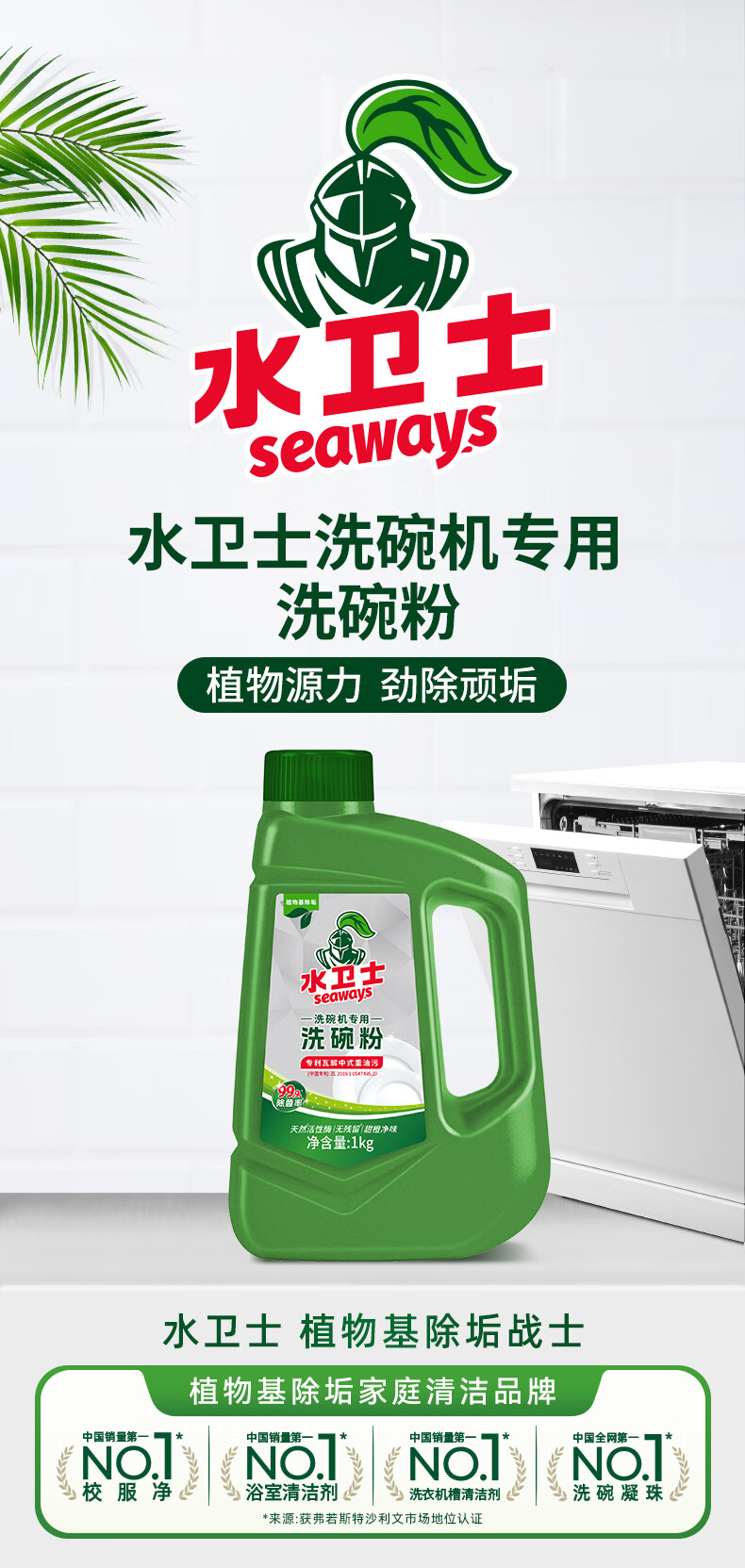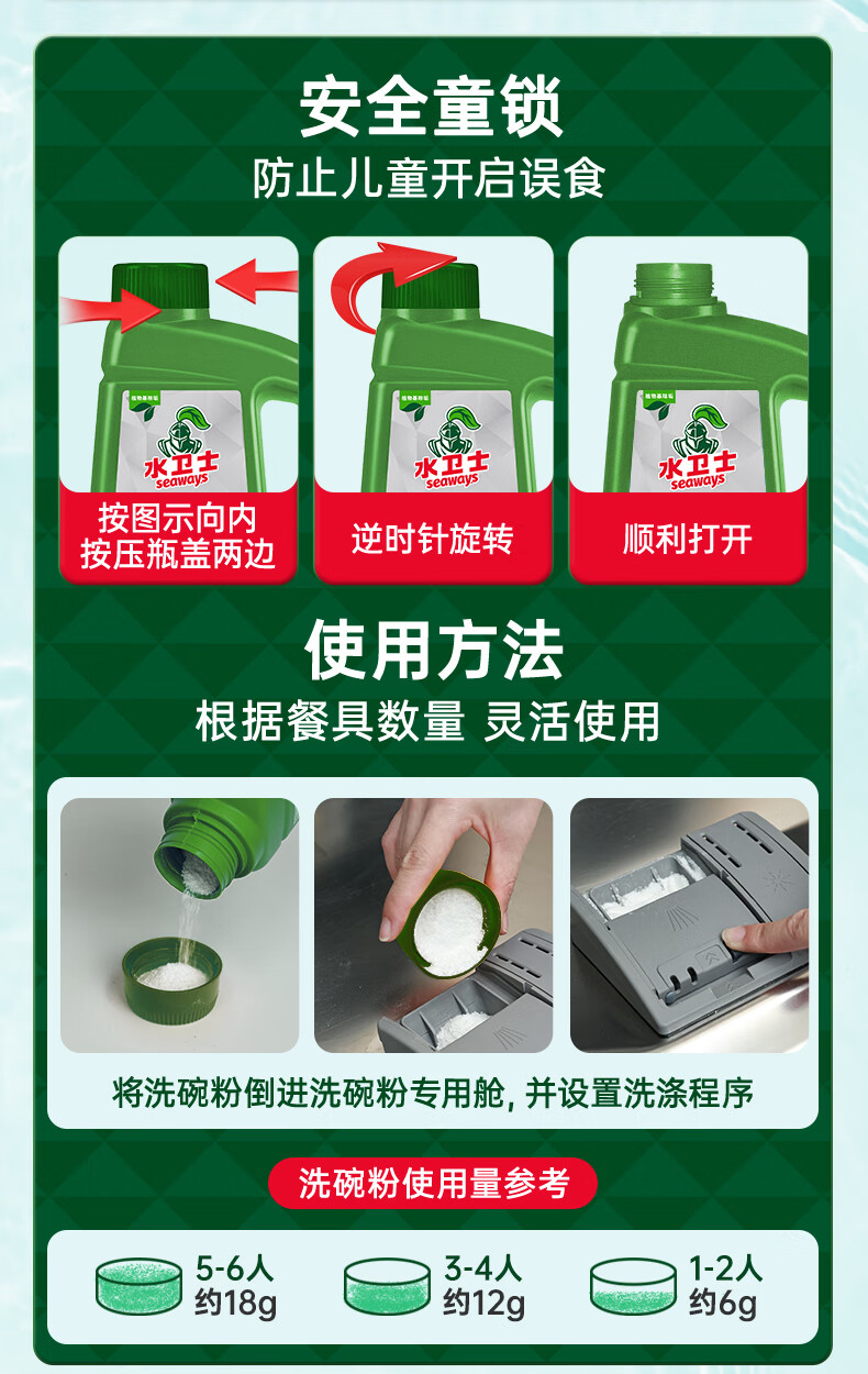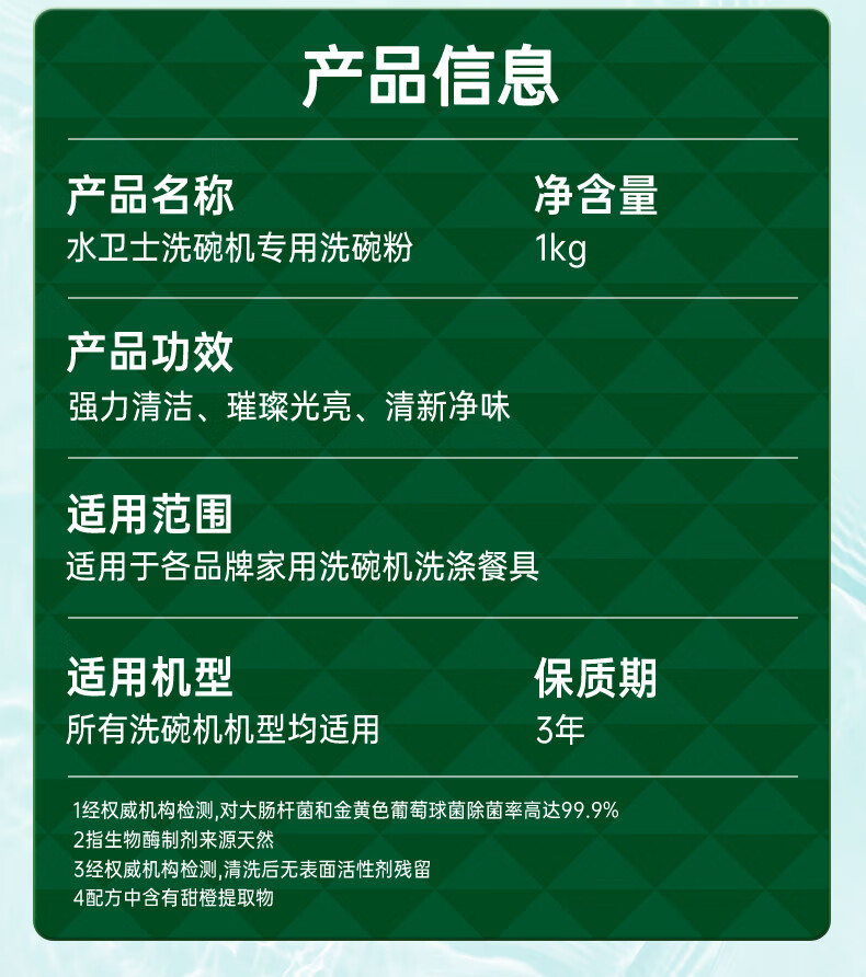 水卫士洗碗粉洗碗机洗涤剂洗碗机耗材 洗碗机漂洗剂洗碗盐软水盐 水卫仕 洗碗机专用洗碗粉1kg*3瓶