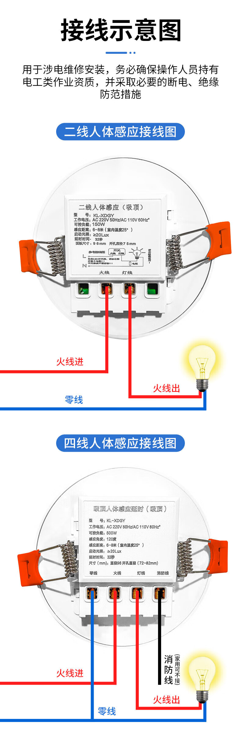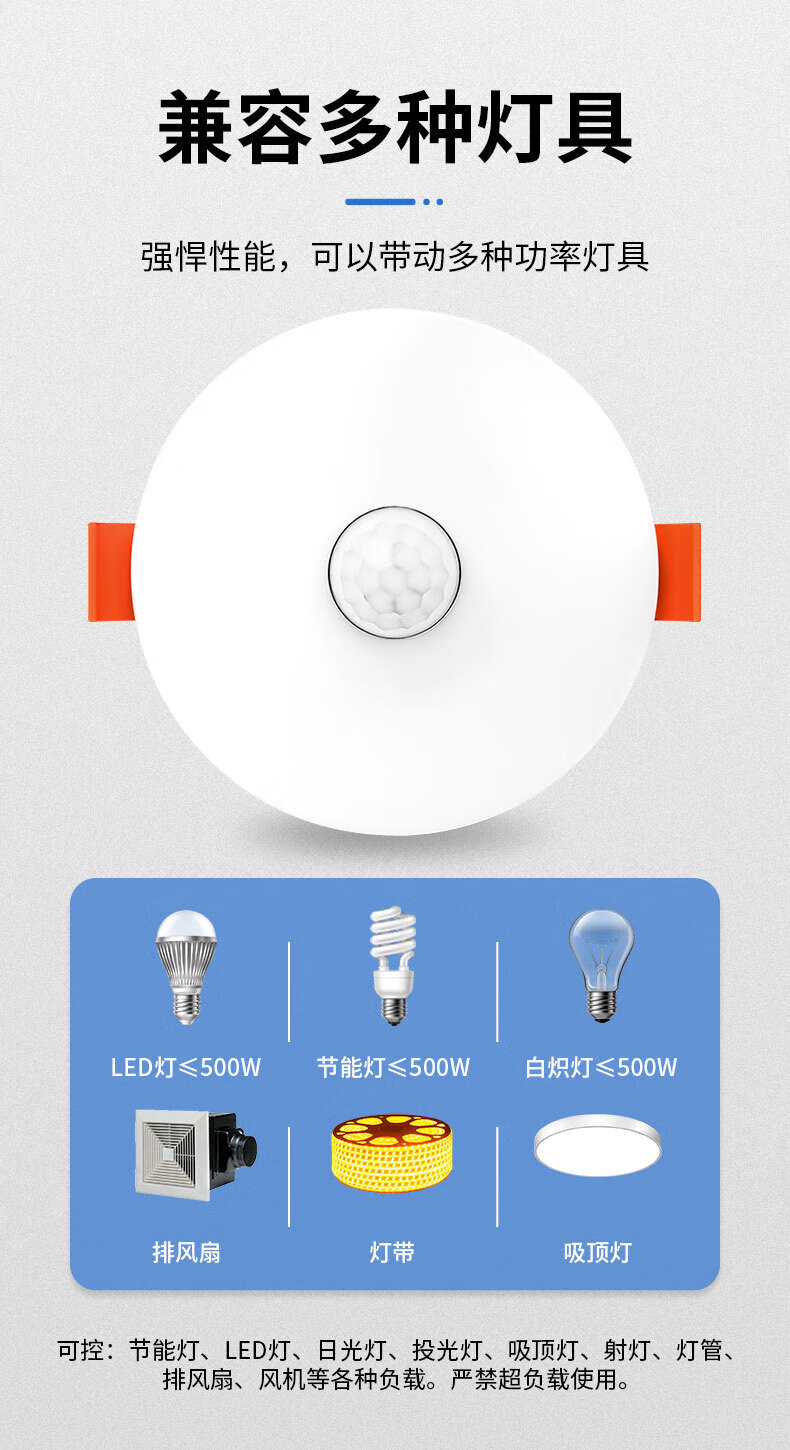 国际电工LED节能三防吸顶灯人体声光控雷达感应超薄楼梯过道走廊阳台照明 150W-人体感应【二线制】