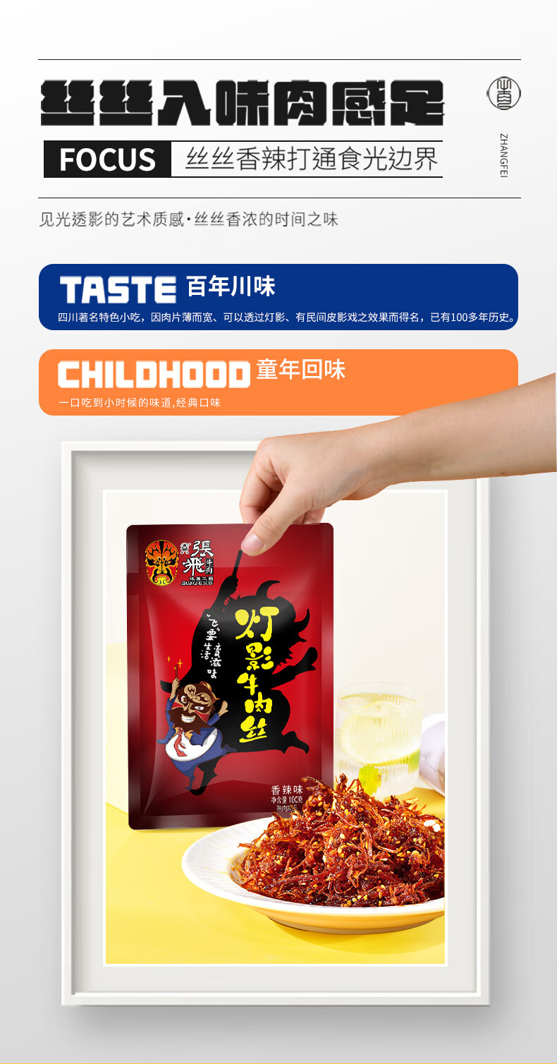 张飞 灯影牛肉丝五香味100g 四川特产 休闲零食小吃