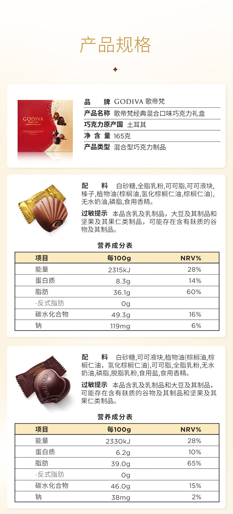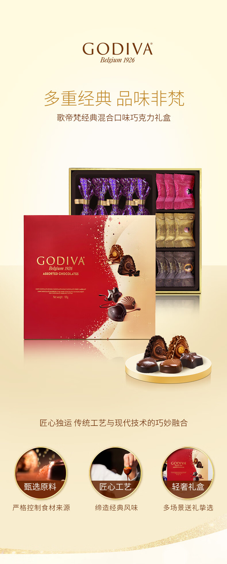 歌帝梵(Godiva)【东哥同款】经典混合巧克力高端礼盒 19颗165g 零食38女神节礼物