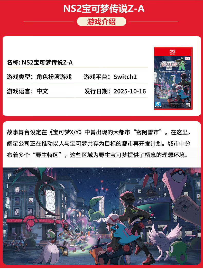 任天堂(Nintendo) Switch游戏卡带全新原装实体卡Switch2游戏软件海外通用版本 NS1口袋妖怪宝可梦传说Z-A -za港版中文现货