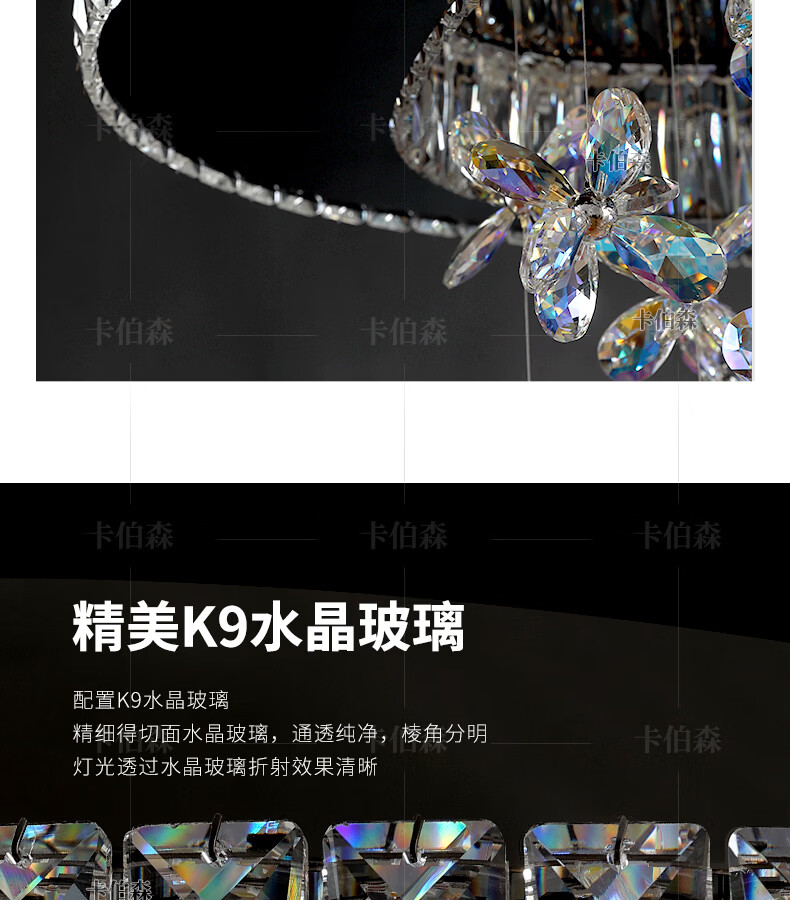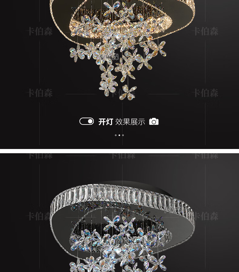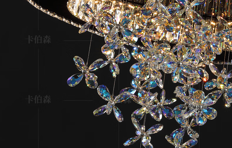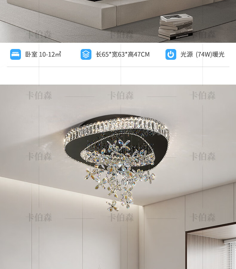 卡伯森卧室吸顶灯现代轻奢大气高级感2026新款创意个性蝴蝶餐厅客厅主灯 透明色花款-长55*宽53*高47CM【无极+天猫精灵】