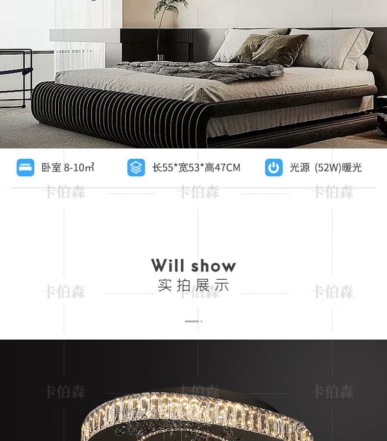 卡伯森意式极简客厅水晶吸顶灯2026新款现代轻奢大气高级感别墅客厅主灯 直径100*高32CM【无极+天猫精灵】【全光谱】