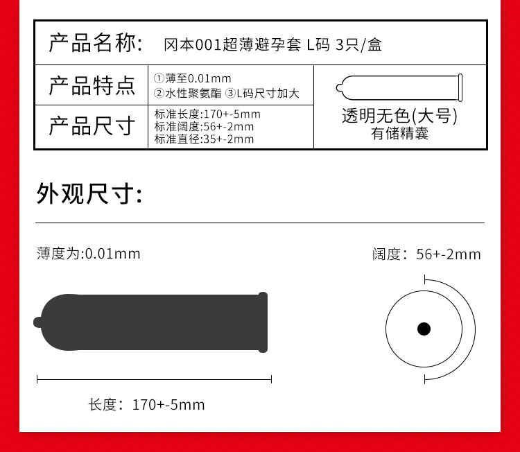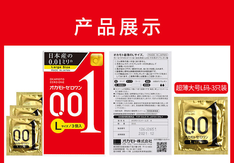冈本001避孕套安全套超薄大号L码3只男女用套套成人情趣计生用品进口