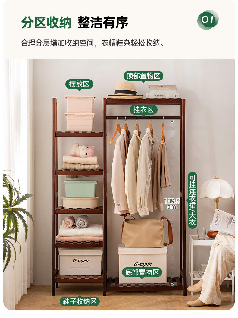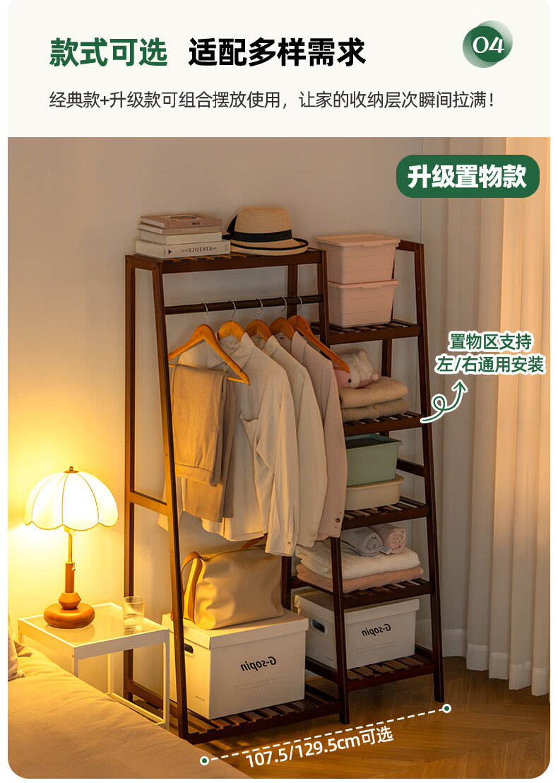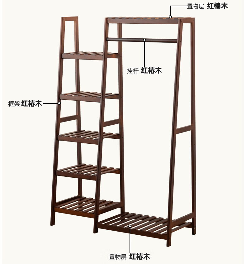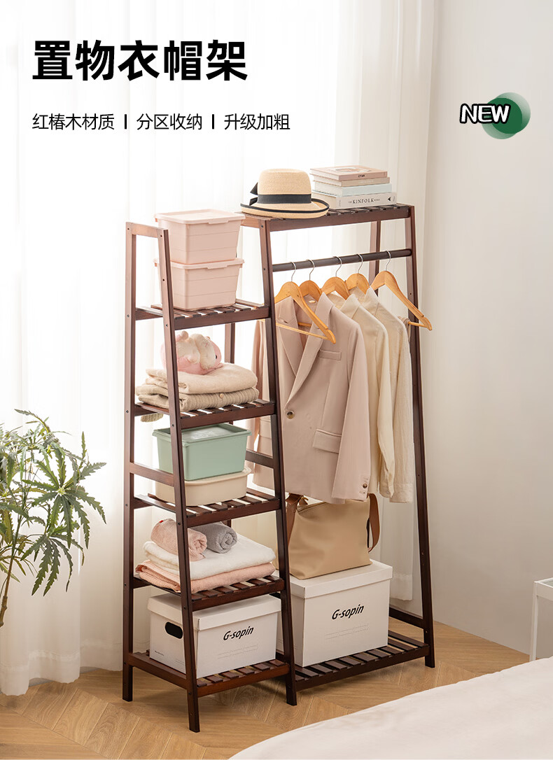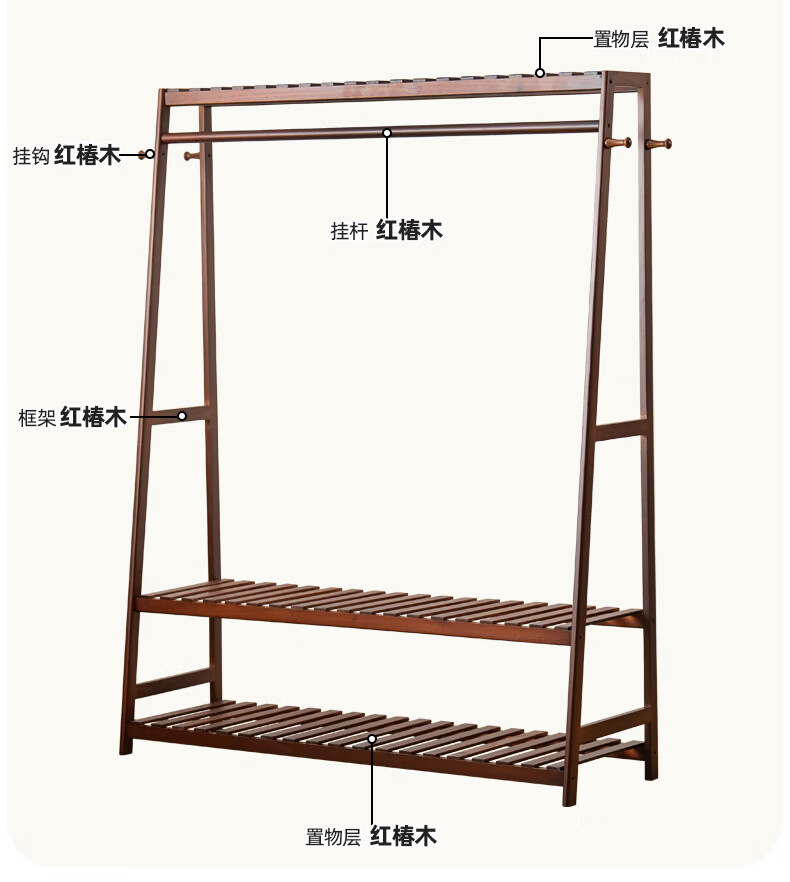 zhuting实木衣帽架落地卧室家用挂衣架简约房间置物架高级感多功能晾衣架 138胡桃色挂衣架【常规款】