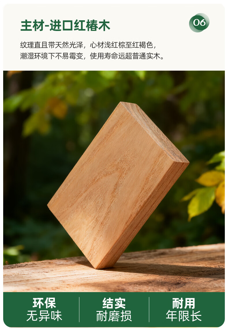 全友家居 北欧原木风北美红橡木实木床家用主卧室高脚双人大床1.8x2米