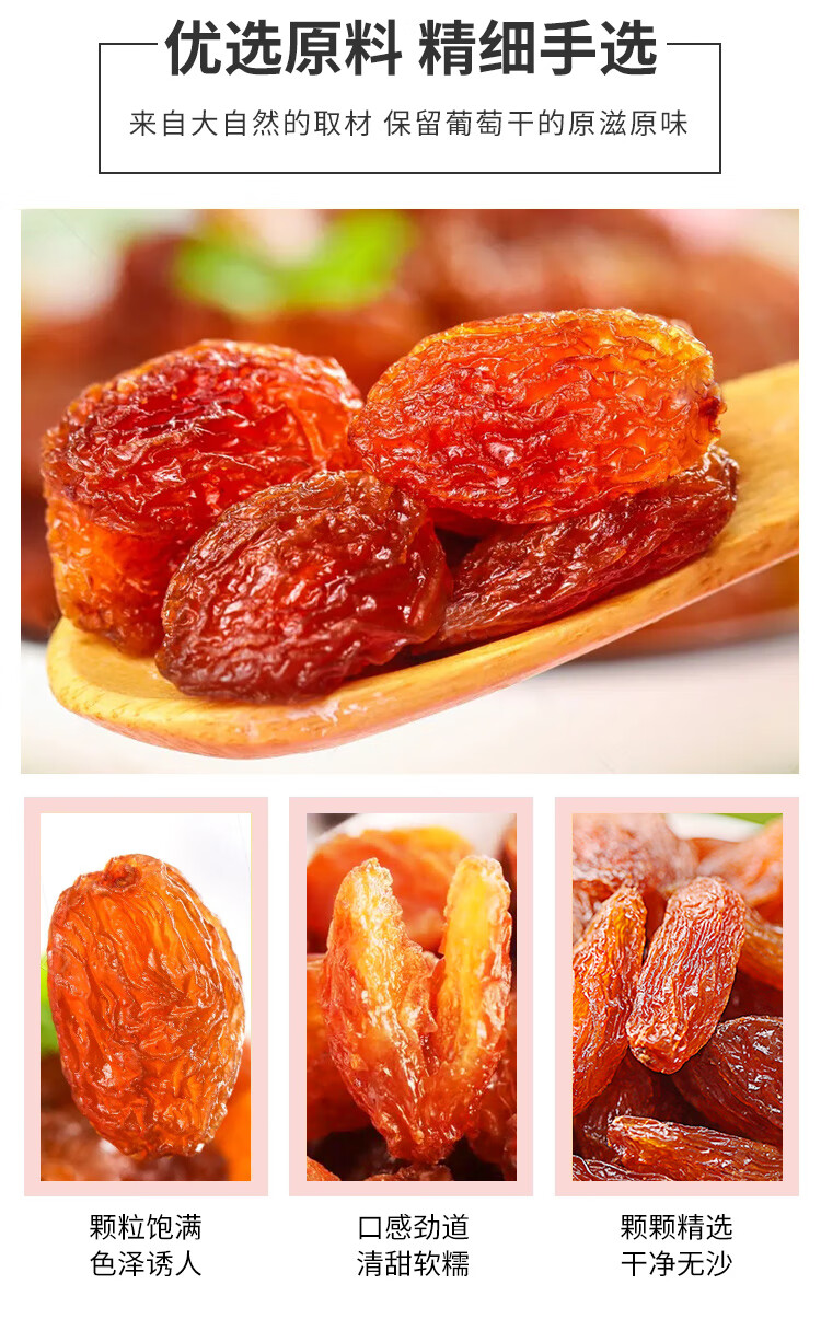 古力巴戈大颗无籽红香妃葡萄干211g/罐 免洗烘焙新疆特产蜜饯果干玫瑰香