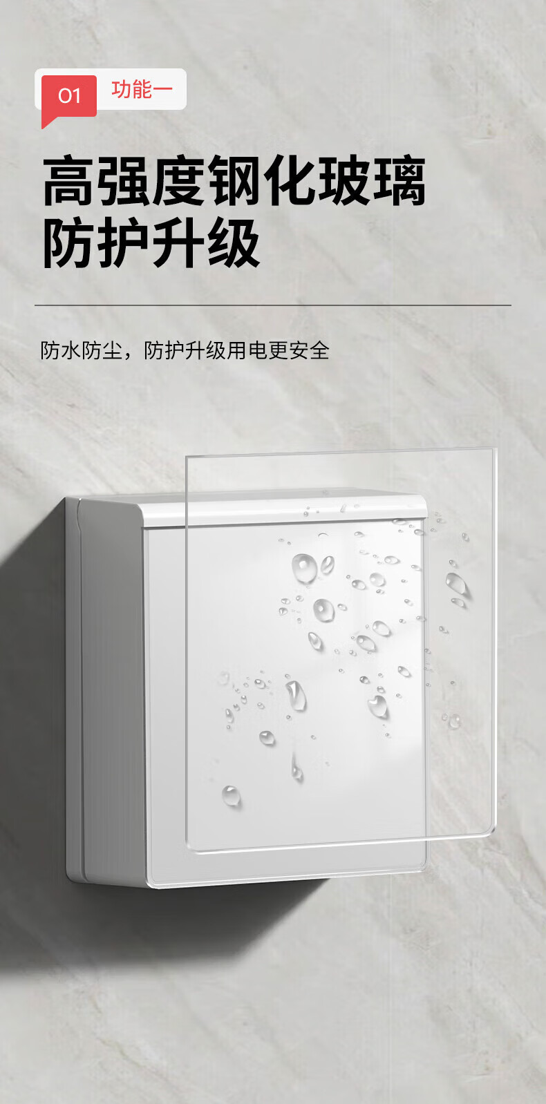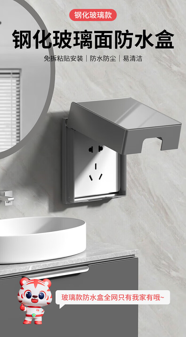 国际电工86型钢化玻璃防水罩卫生间防溅盒浴室防水盒开关插座粘贴保护盖套 白色超薄-钢化玻璃防水盒