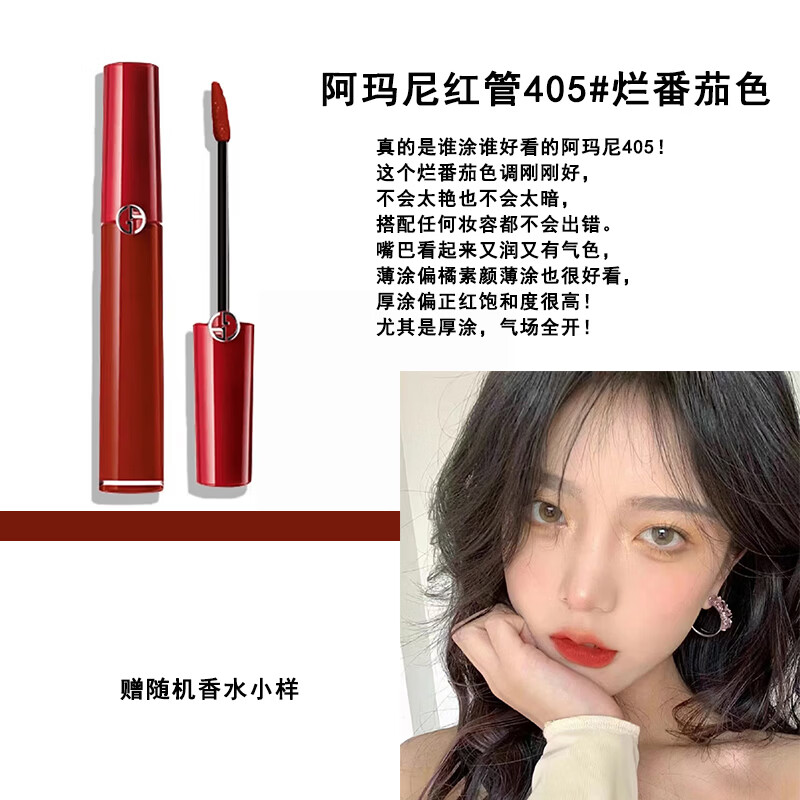 阿玛尼Armani香薰蜡烛唇釉405番茄香薰套装七夕情人中秋节送女友闺蜜节 阿玛尼405番茄色-赠随机香水小样