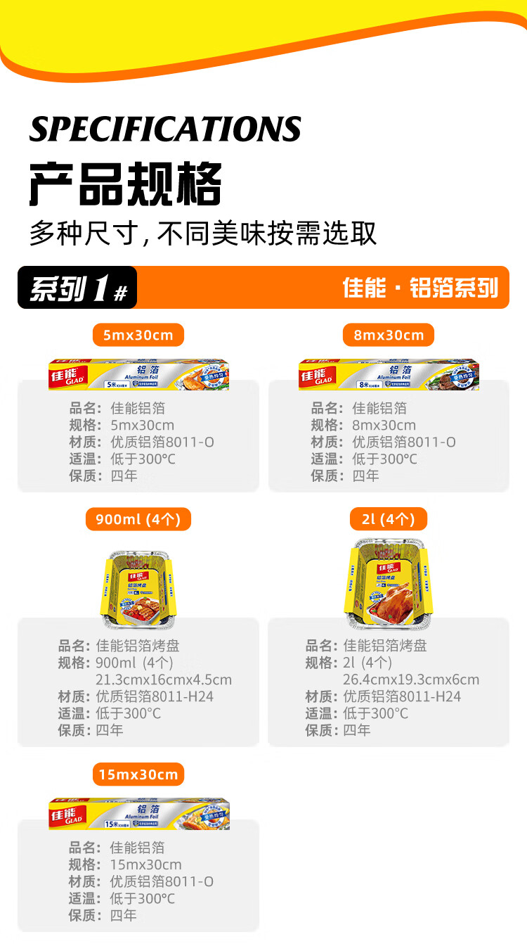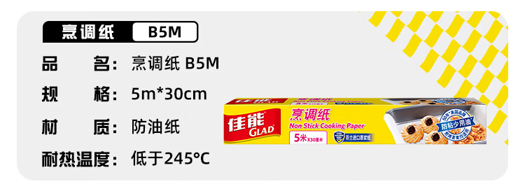 佳能(Glad)烘焙烹调纸5m*30cm 烤肉烘焙硅油纸 空气炸锅烤箱烤盘纸 原装进口