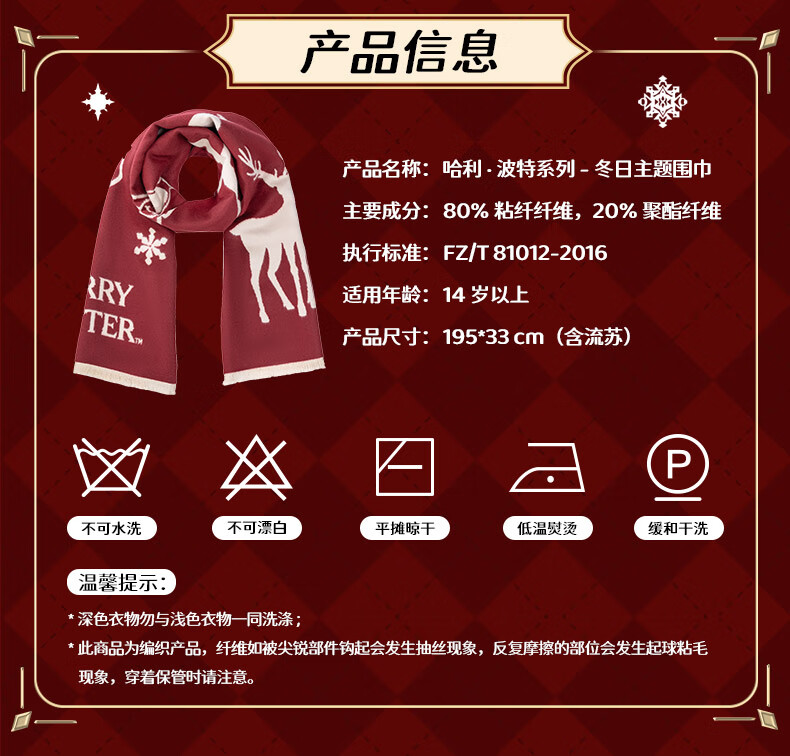 哈利·波特 冬日主题围巾 赫敏哈利波特围巾围脖电影周边冬季保暖新年礼物 赫敏·格兰杰款