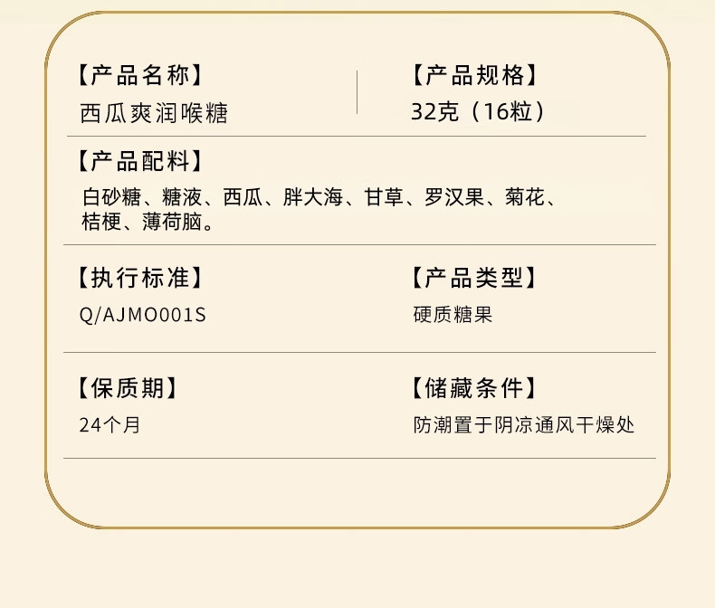 草本西瓜爽润喉糖秋冬必备咽喉嗓子润喉糖1盒 西瓜爽润喉糖1盒(16粒)