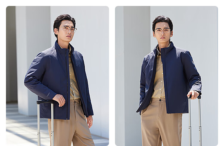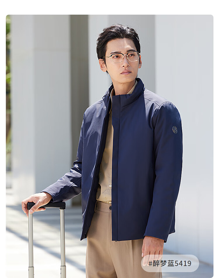 波司登(BOSIDENG)【断码清仓】经典商务轻薄鹅绒羽绒服男短款90绒通勤立领夹克外套 醉梦蓝5419 XL 185/104A