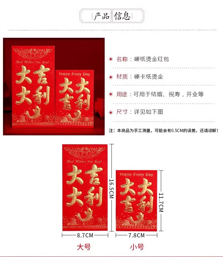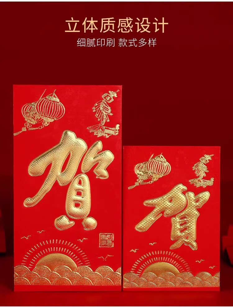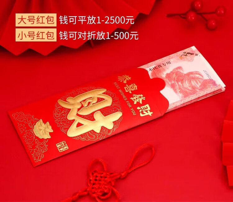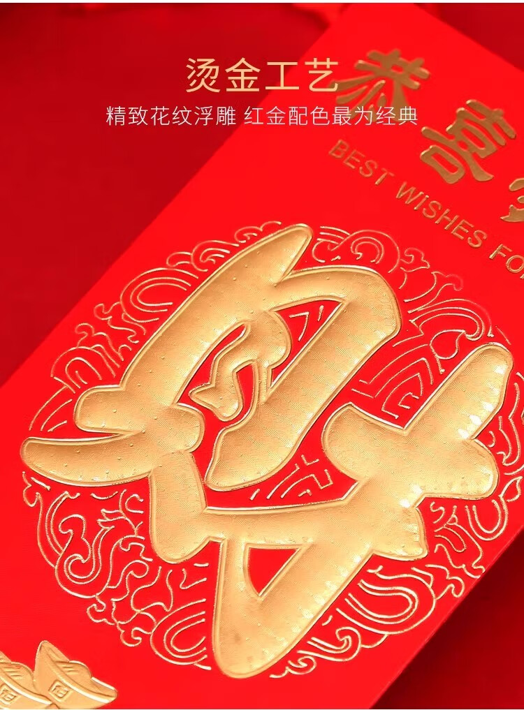 新年红包蛇年春节新年快乐压岁包大吉大利万事如意恭喜发财通用袋 新年快乐 6个装(大号)百元可平放