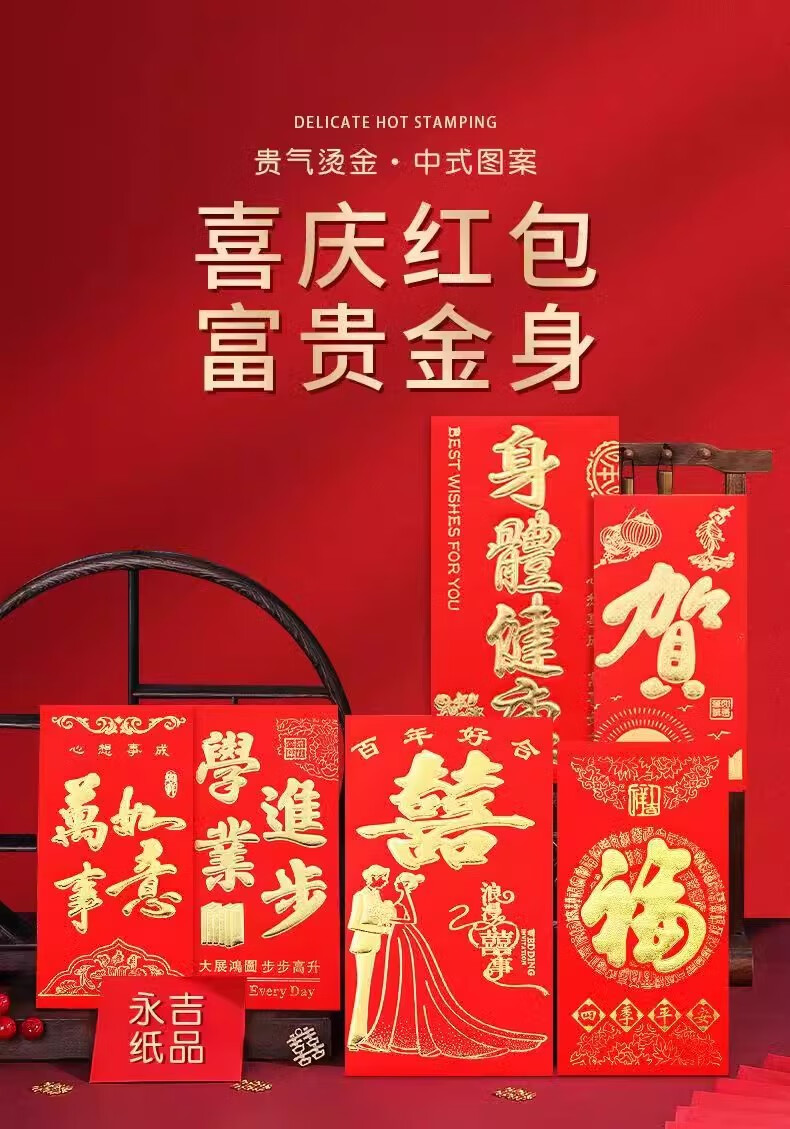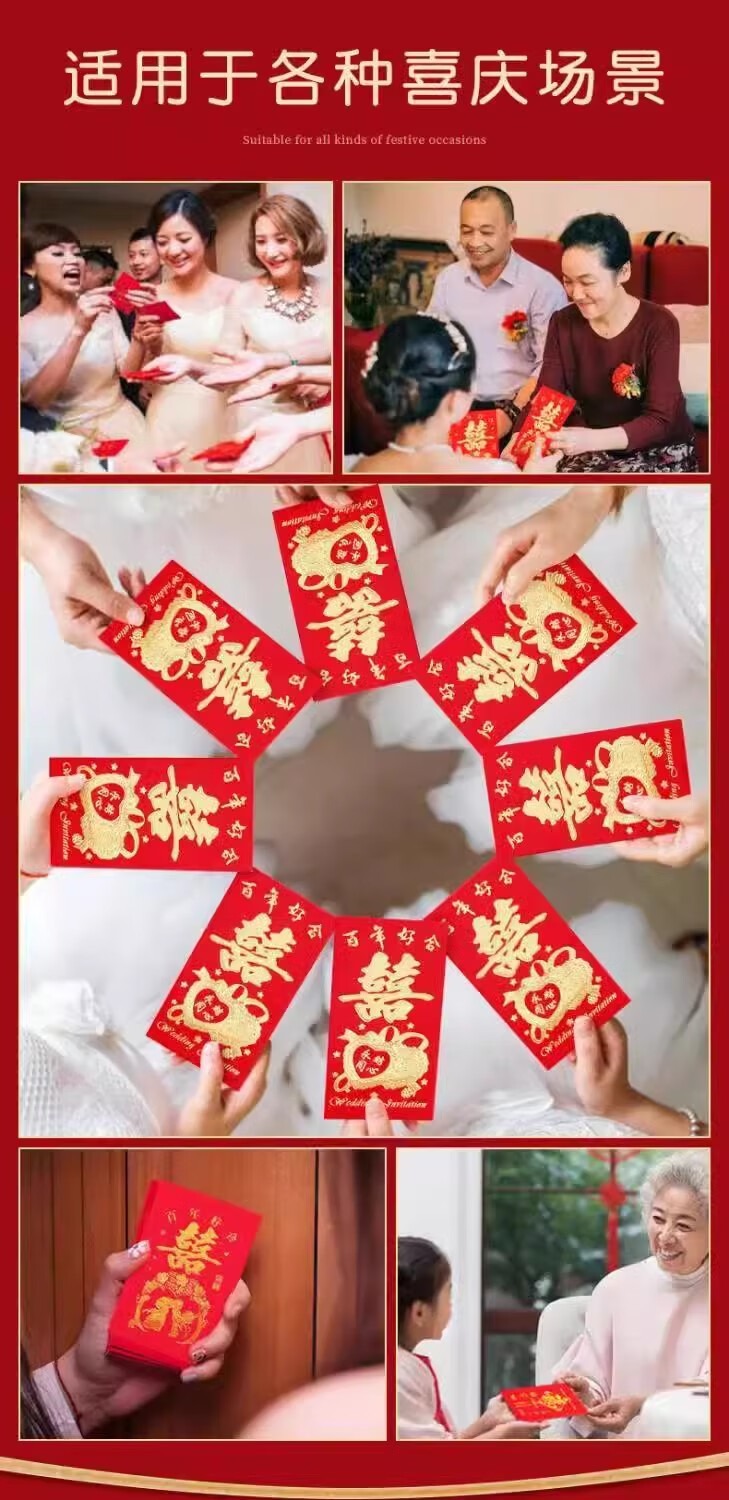 烫金千元红包硬质结婚创意婚礼中式利是封红包袋婚庆用品大全 烫金圆喜 千元红包10个(百元平铺可放500-2