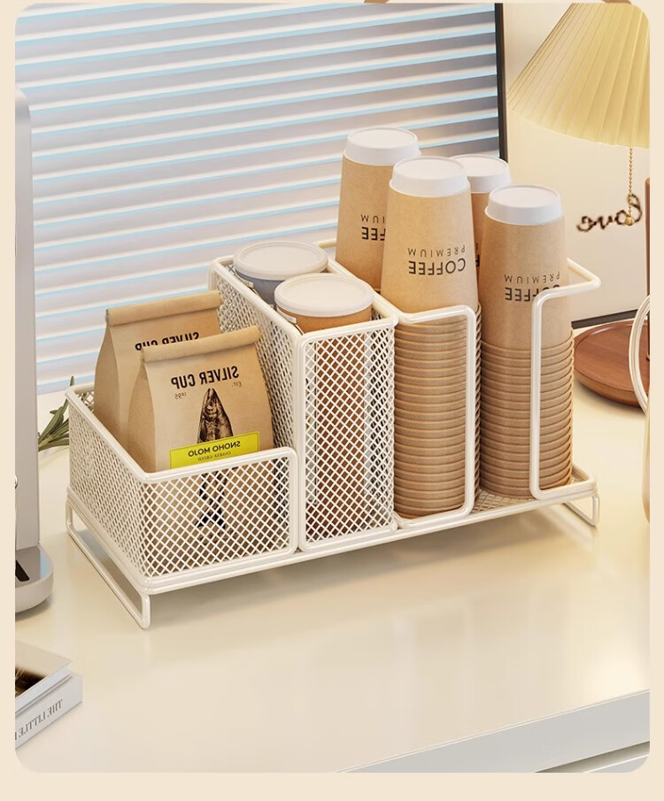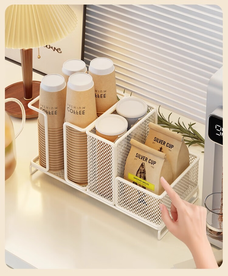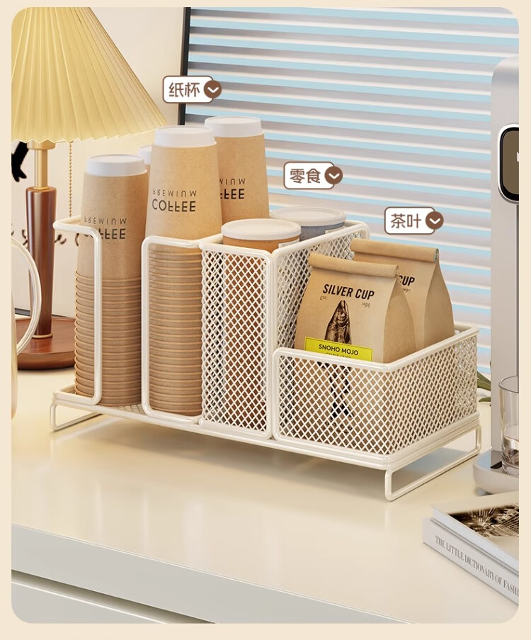 尔思家桌面纸杯架一次性杯子置物架茶包咖啡包放置架收纳架子水杯取杯器 白色-升级款