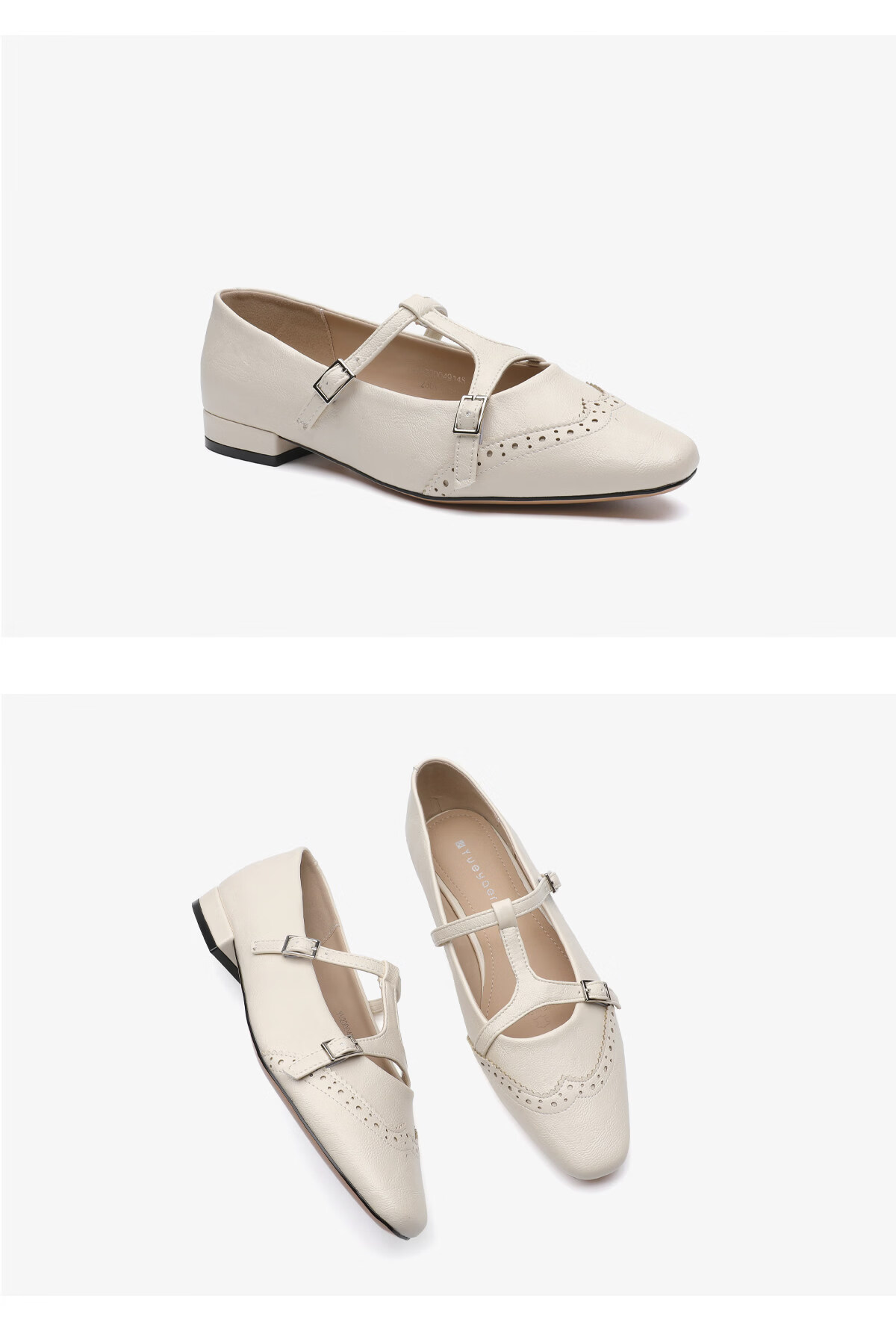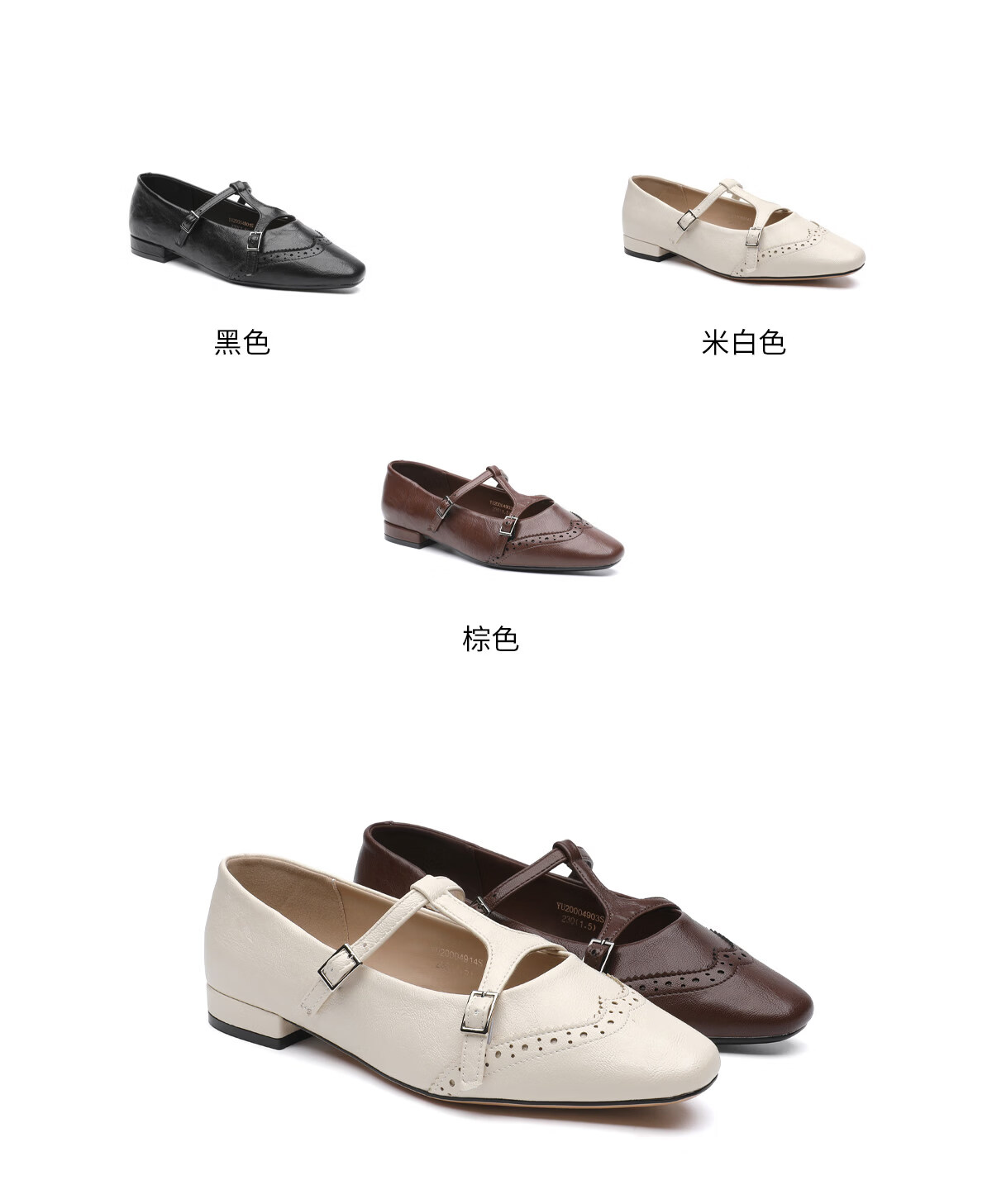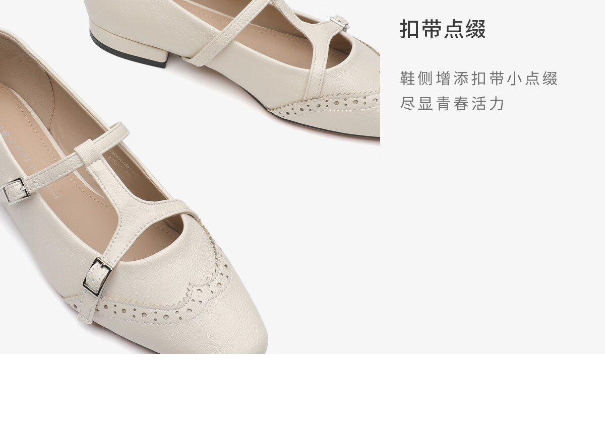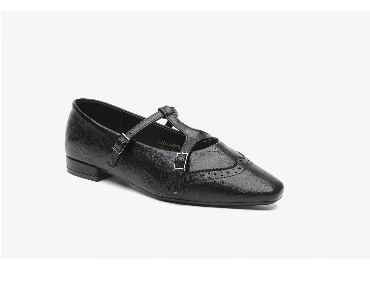 月芽儿PU(聚氨酯)洛克玛丽珍鞋女一字带方头气质单鞋 黑色01S 34