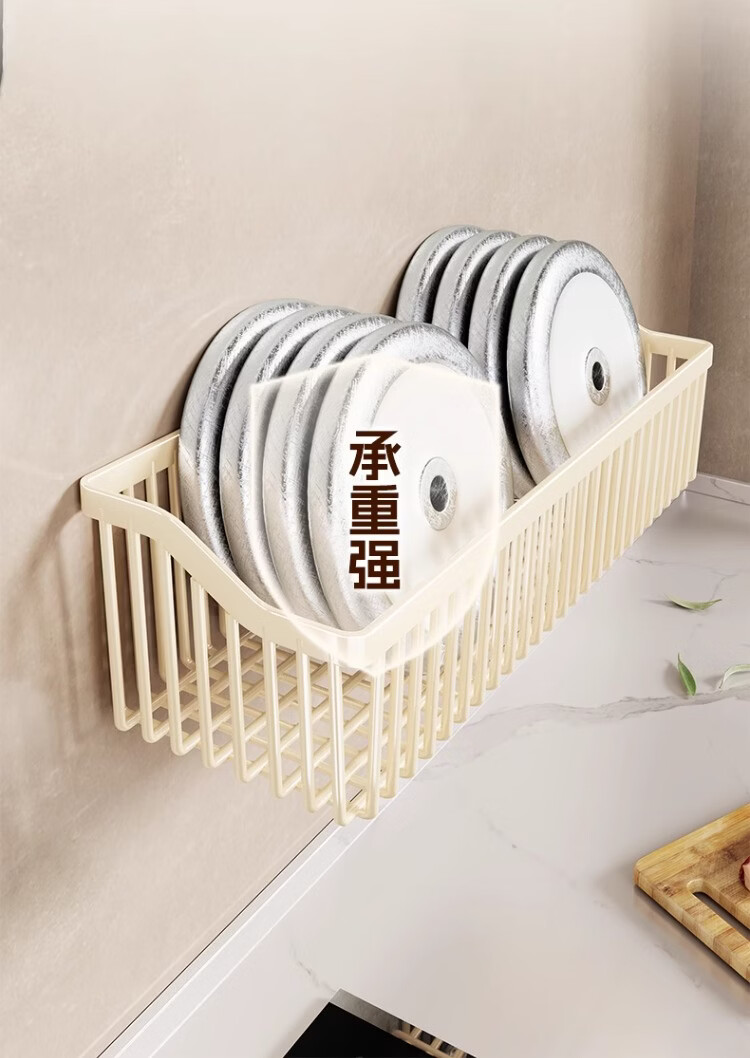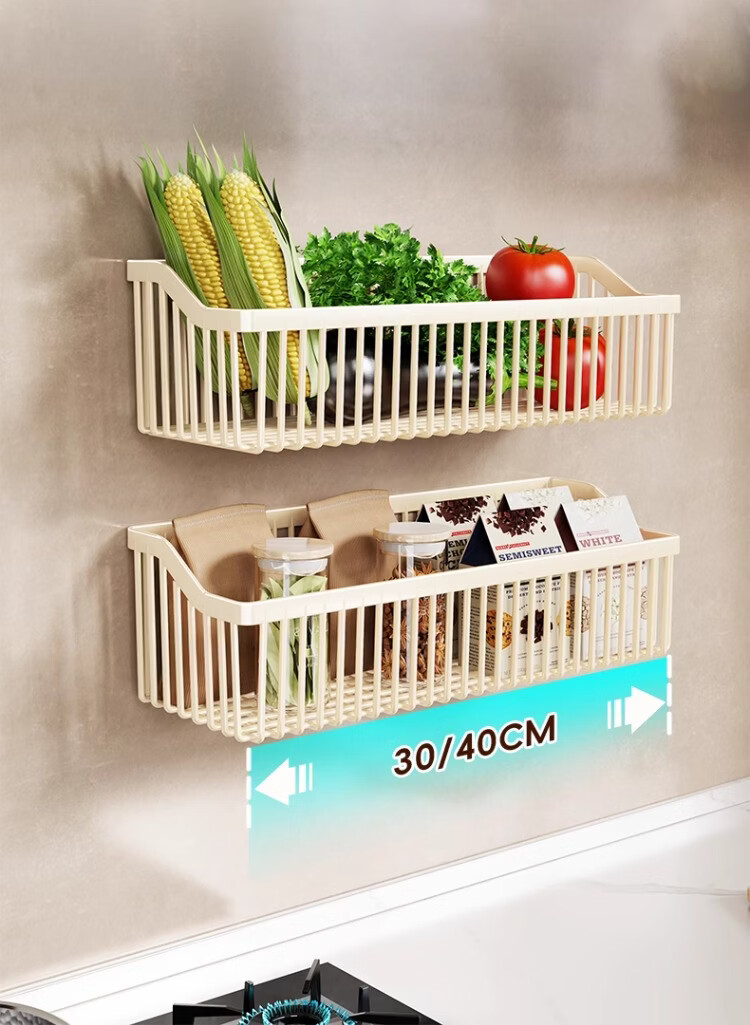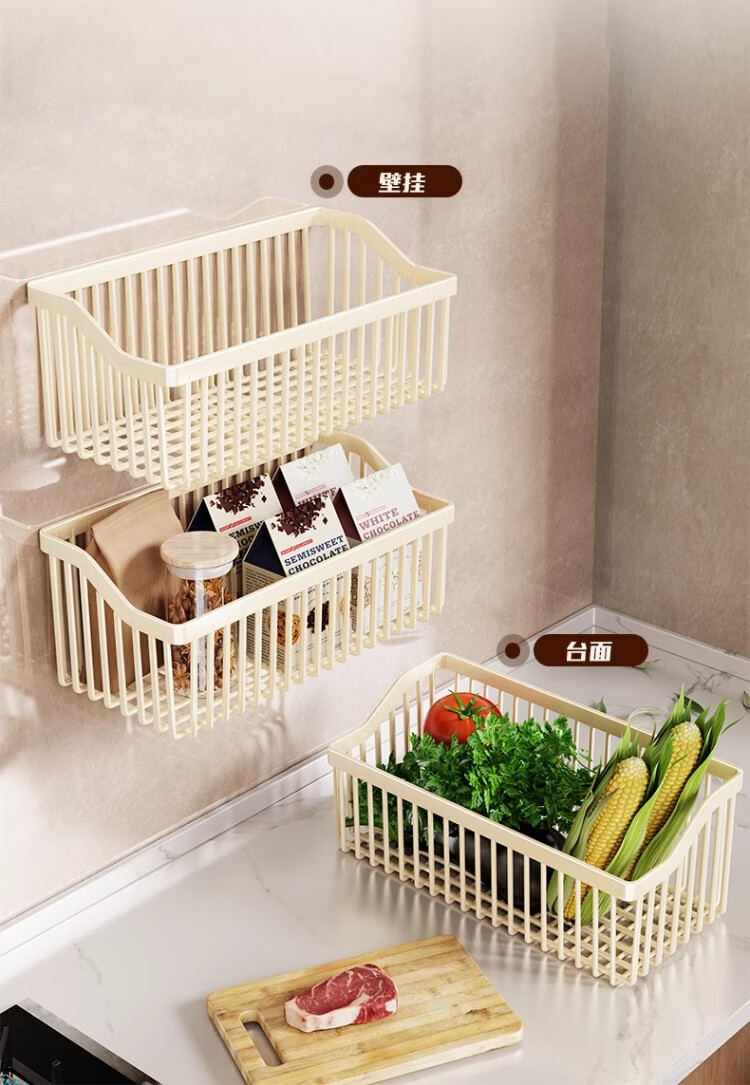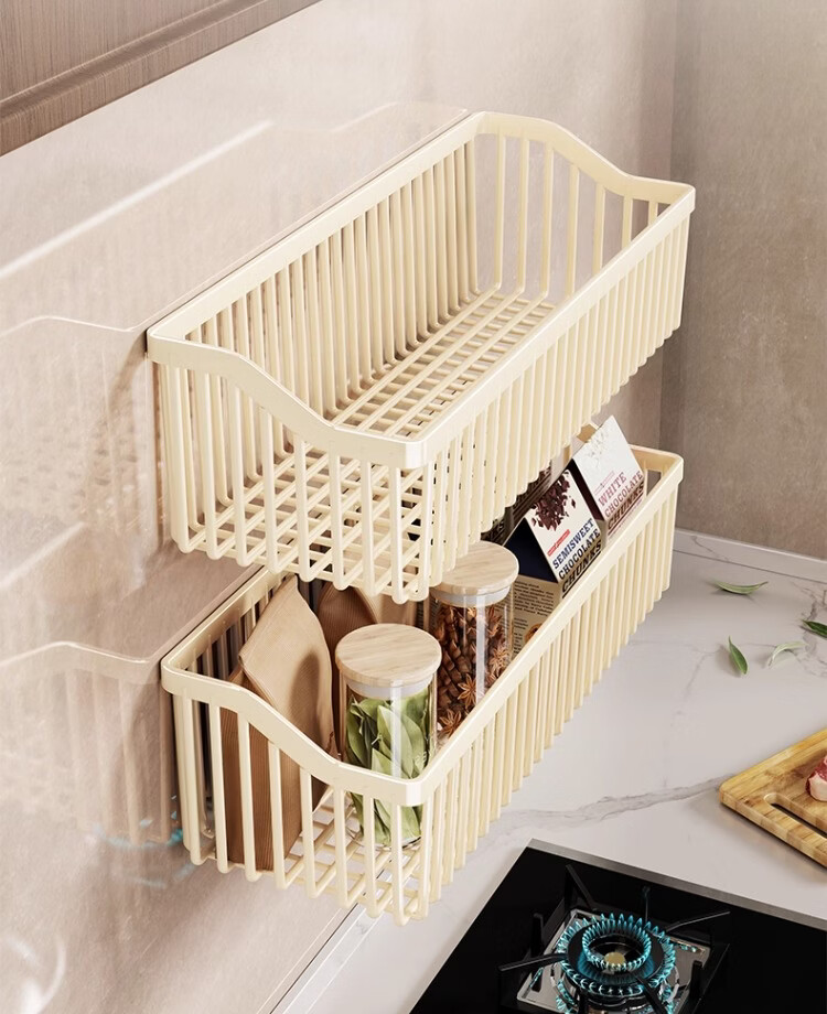 尔思家厨房置物架墙上免打孔葱姜蒜收纳盒多功能菜篮子沥水架多层调料架 白色-大号双层