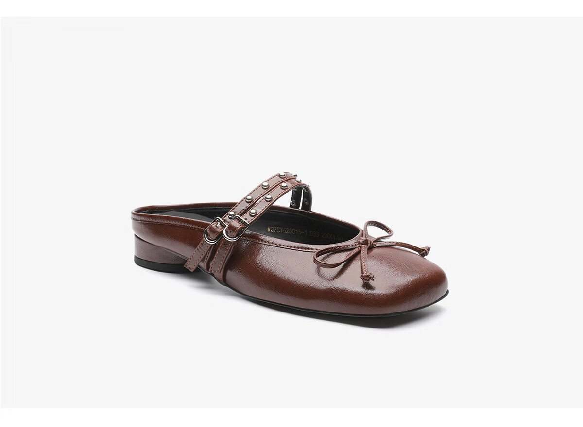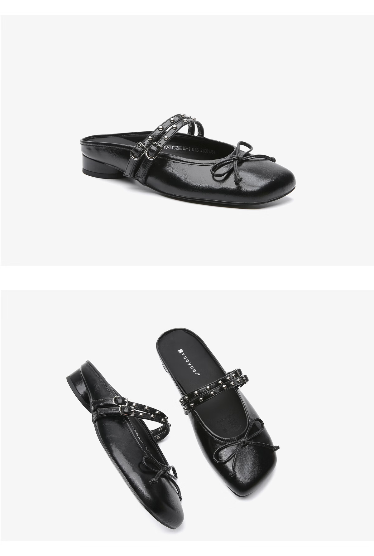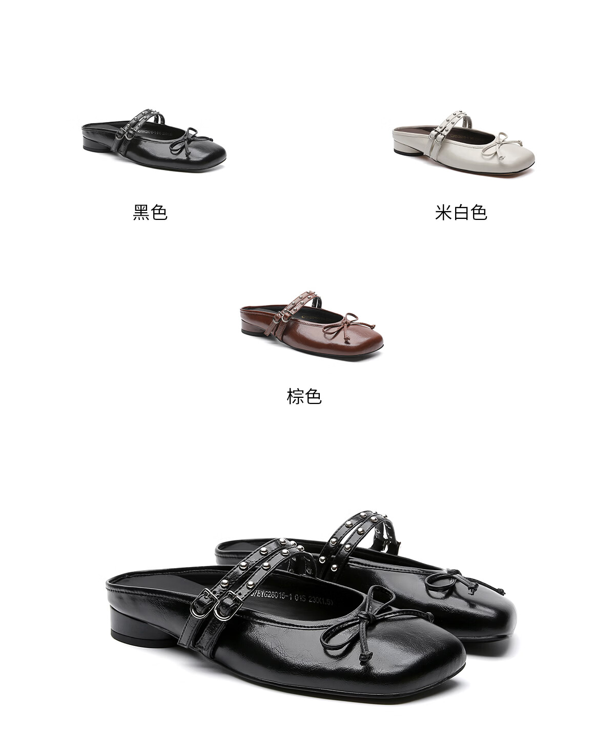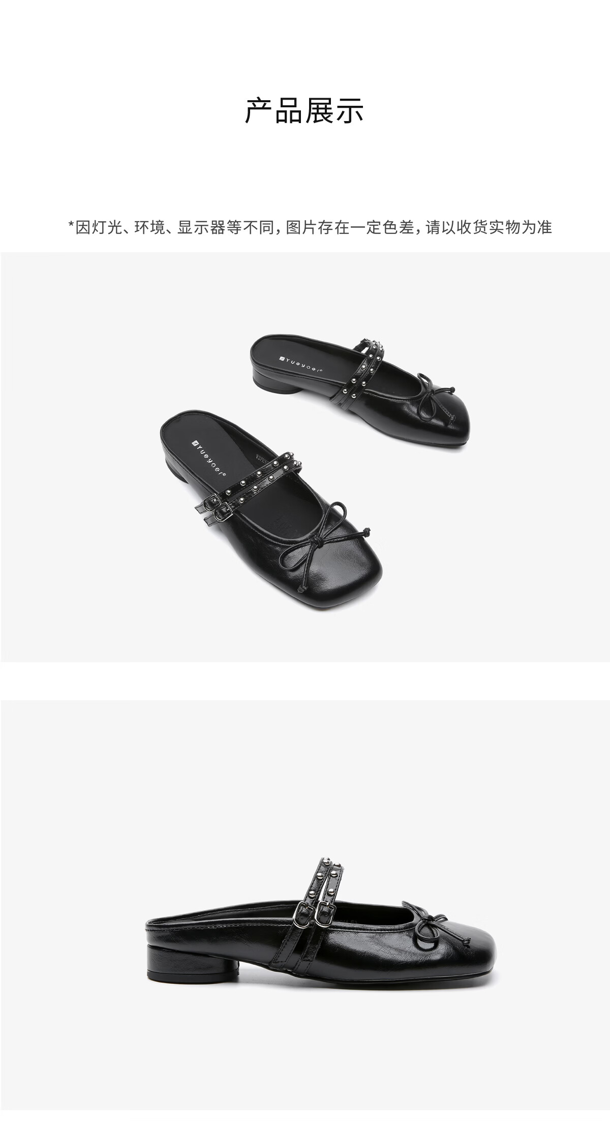 月芽儿法式包头半拖鞋女2025年冬季季新款时尚百搭单鞋蝴蝶结穆勒鞋拖 黑色01S 34