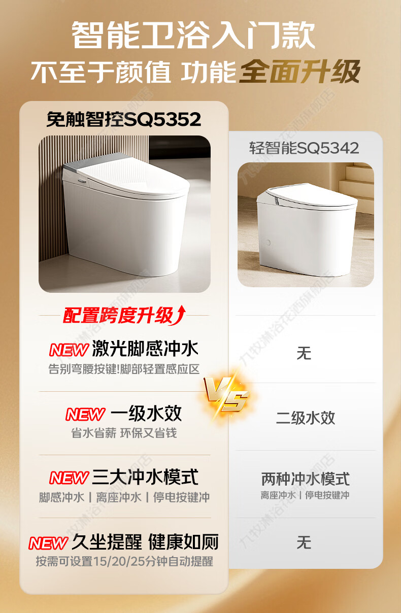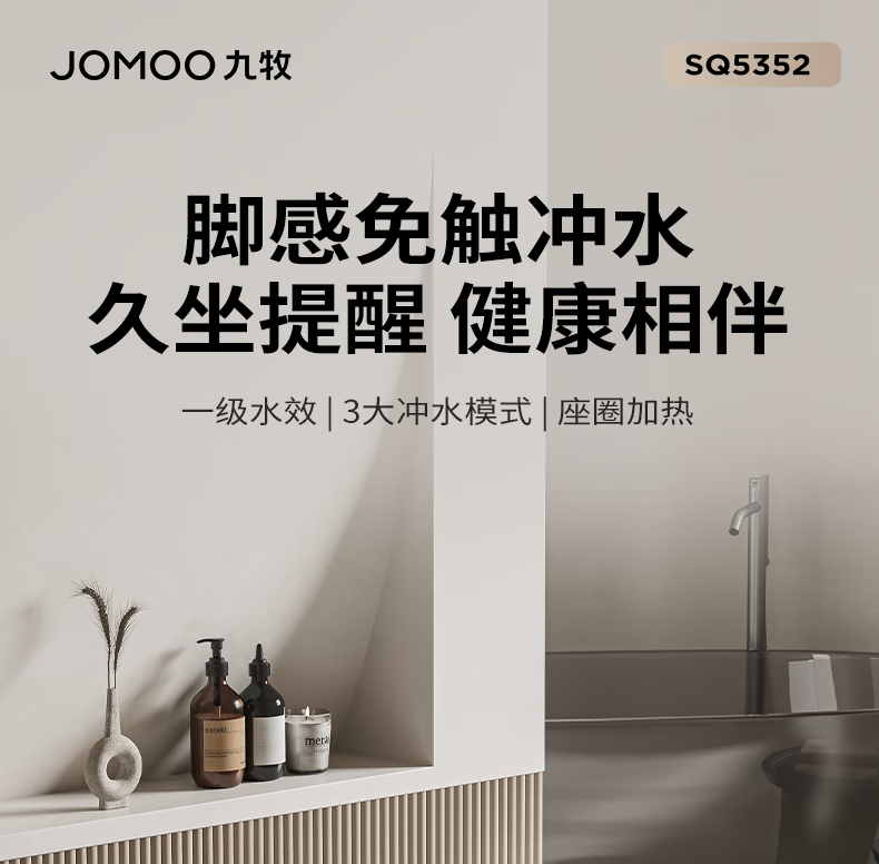 九牧(JOMOO)轻智能马桶一体机脚感离座冲恒温座圈1级水效虹吸坐便器5342升级 【26年新品入门脚感冲水】无水箱SQ5352 400mm
