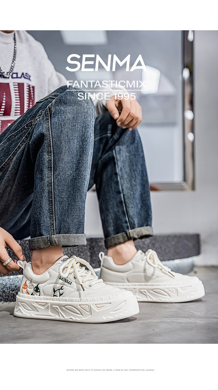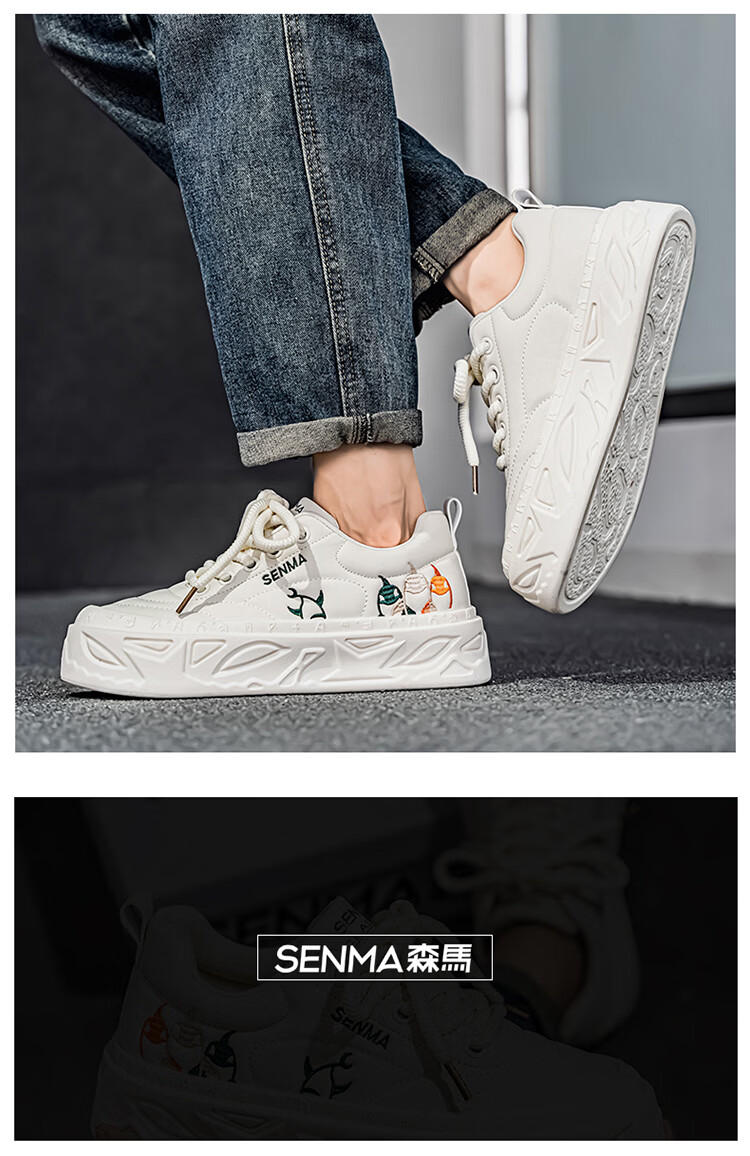 森馬男鞋春季2026新款高级感百搭休闲板鞋男士高级感厚底防滑运动潮鞋 白色【基础款】 39 标准码数/现货秒发