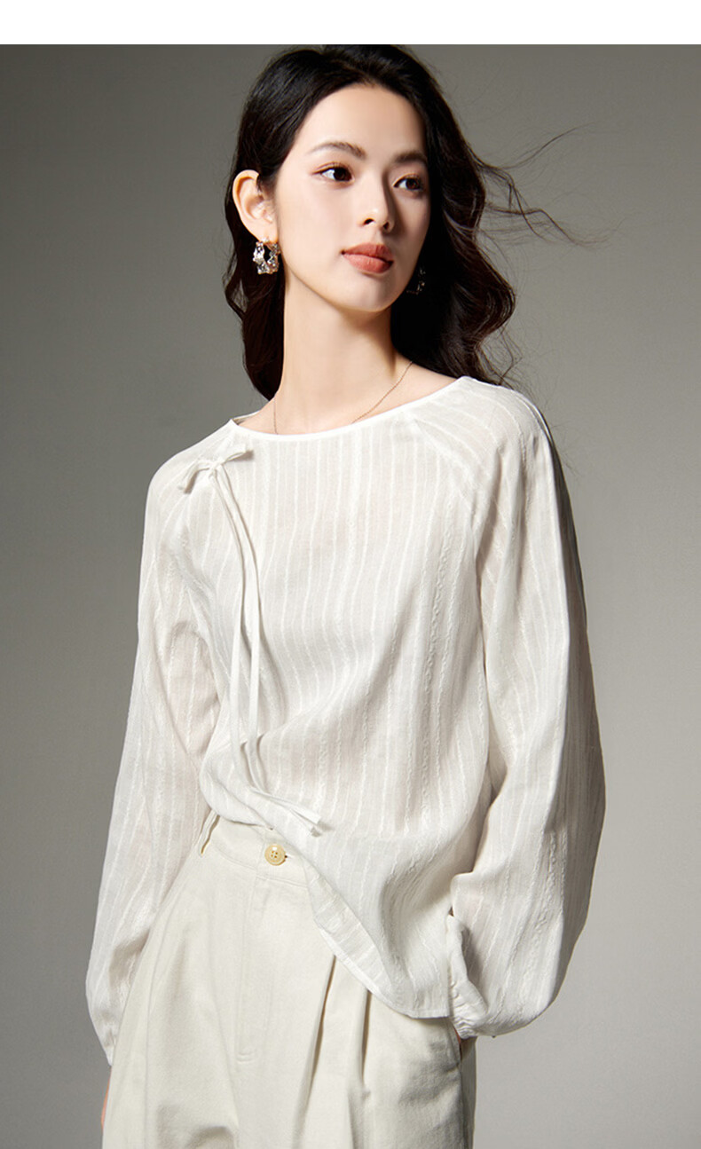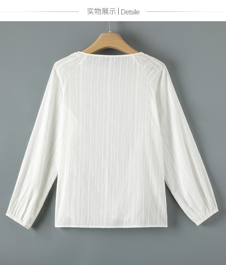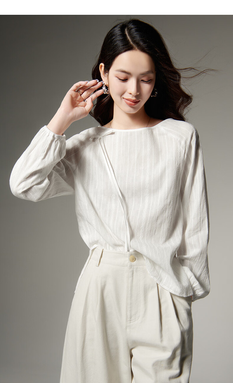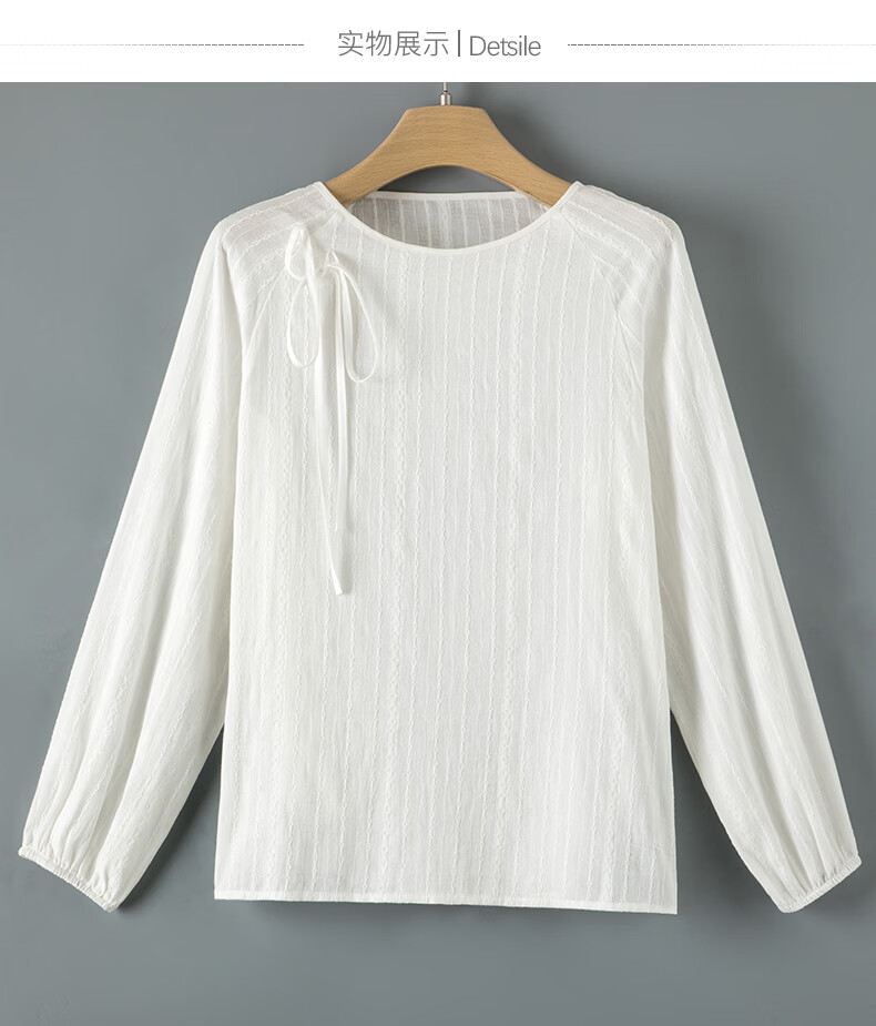 晚白【断码清仓】时尚系带圆领全棉上衣宽松亲肤舒适休闲衬衫女 白色 M